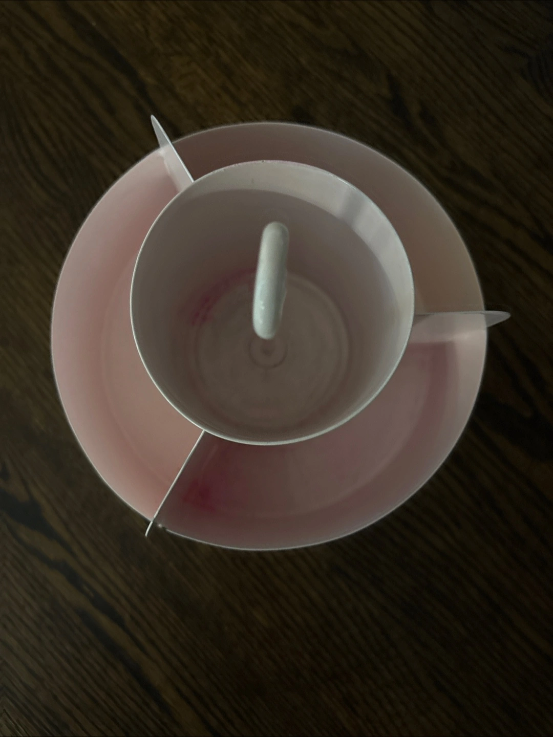 Here's a cute pink organizer caddy! It's perfect for keeping your desk or vanity tidy. It has a unique design with a central cup and surrounding compartments. It's in great condition and ready for a new home!