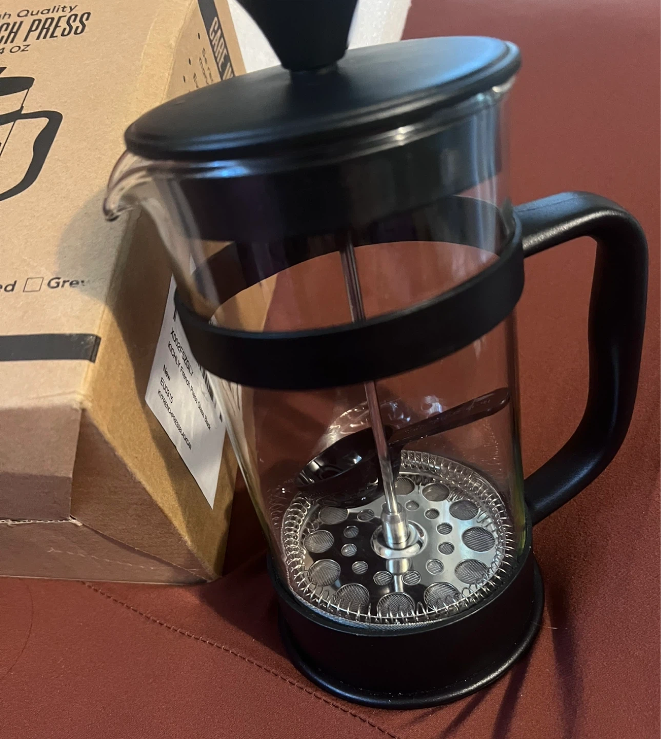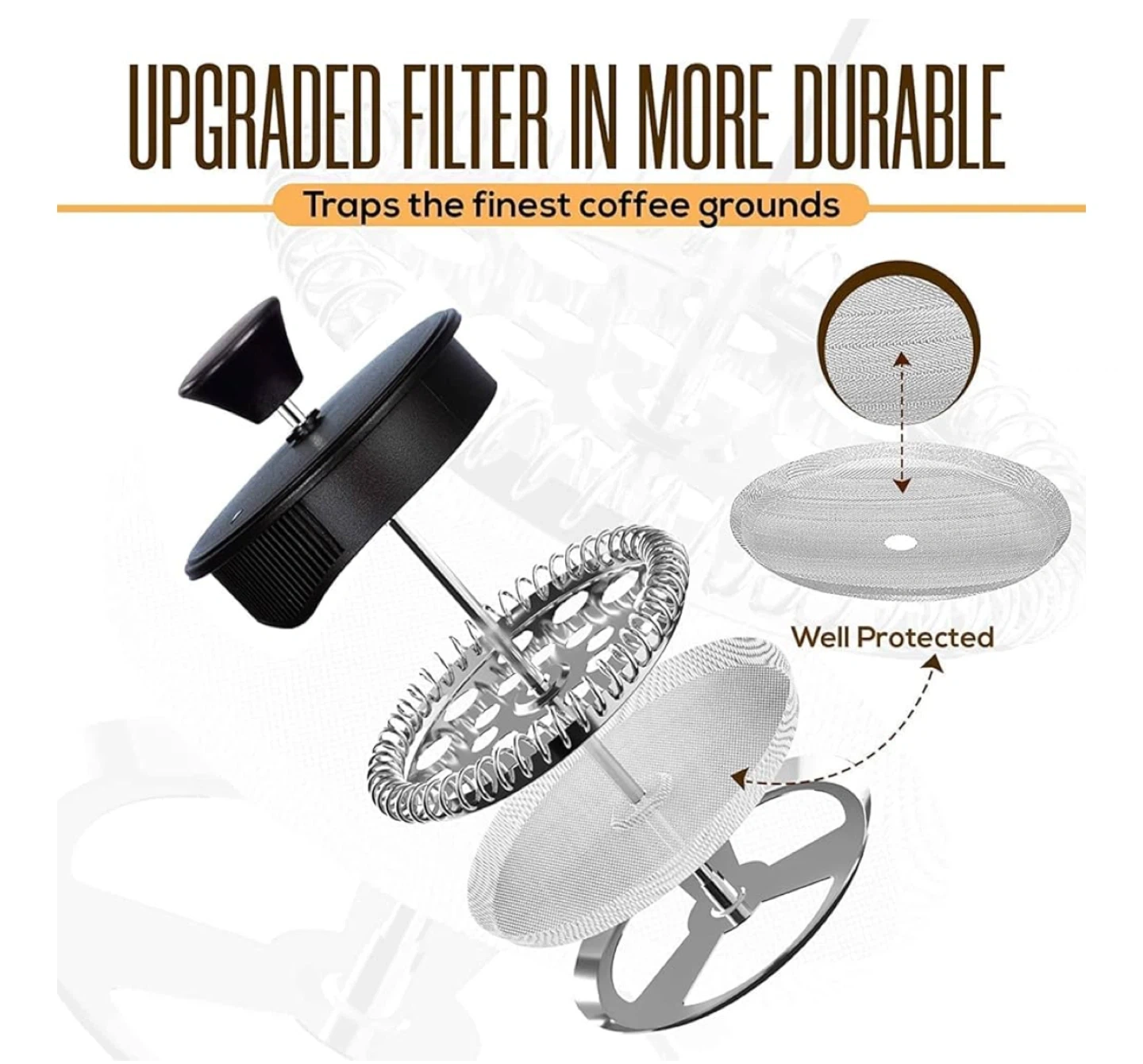 This French press coffee maker is perfect for brewing a rich and flavourful cup of coffee right in your own kitchen! It's easy to use, just add coarse coffee grounds, pour in hot water, brew for 4 minutes, then press and enjoy. The upgraded filter traps even the finest coffee grounds for a smooth, clean taste. Brand new with box. Never used.