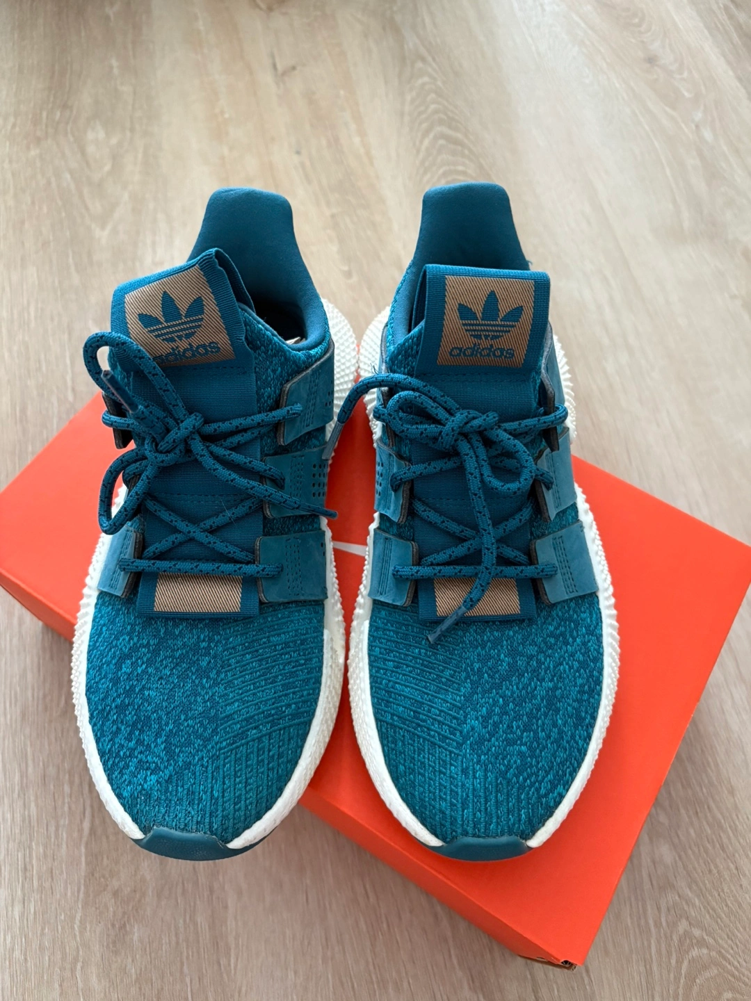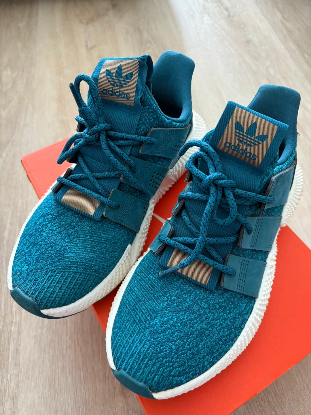 These Adidas Prophere sneakers are in great shape and come with the original box! The teal blue colour is really striking. They're super comfortable and stylish, perfect for everyday wear