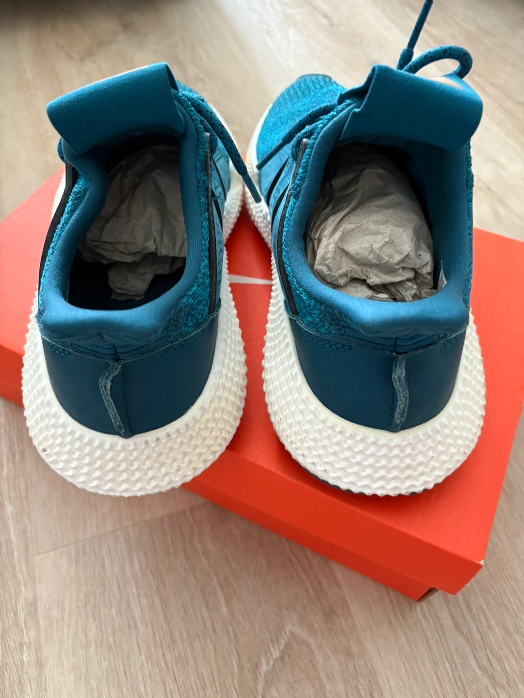These Adidas Prophere sneakers are in great shape and come with the original box! The teal blue colour is really striking. They're super comfortable and stylish, perfect for everyday wear