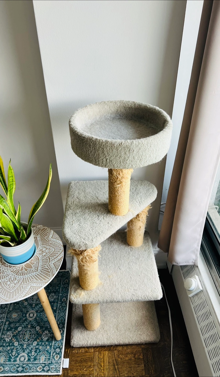 It has multiple levels for your fur baby/babies to explore and relax on. Under 4 feet tall.
