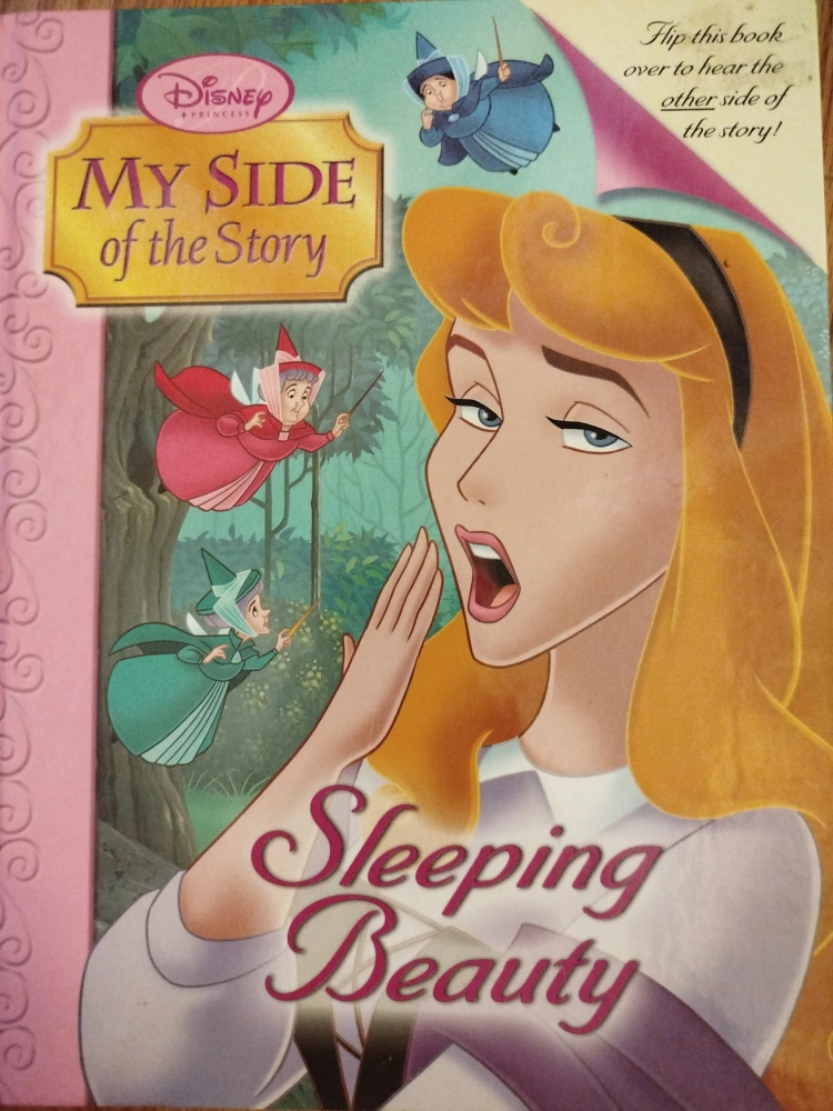 Selling a Disney Princess book titled 'My Side of the Story: Sleeping Beauty'. It flips over to hear the other side of the story, featuring Maleficent! A fun and engaging read for kids
