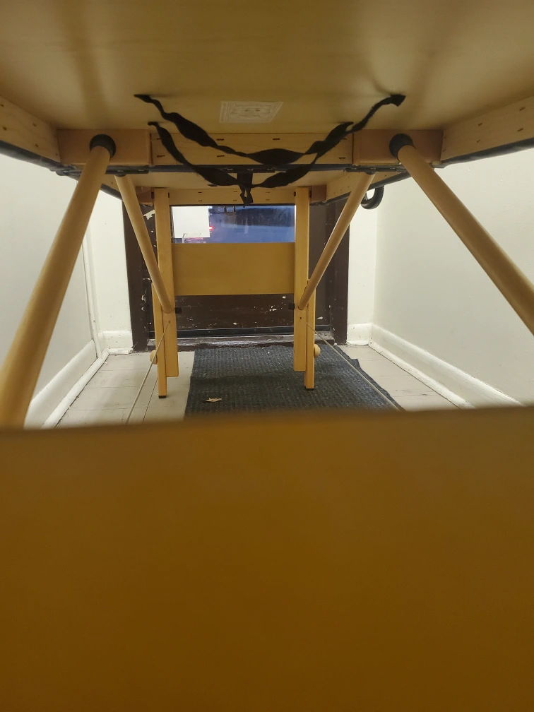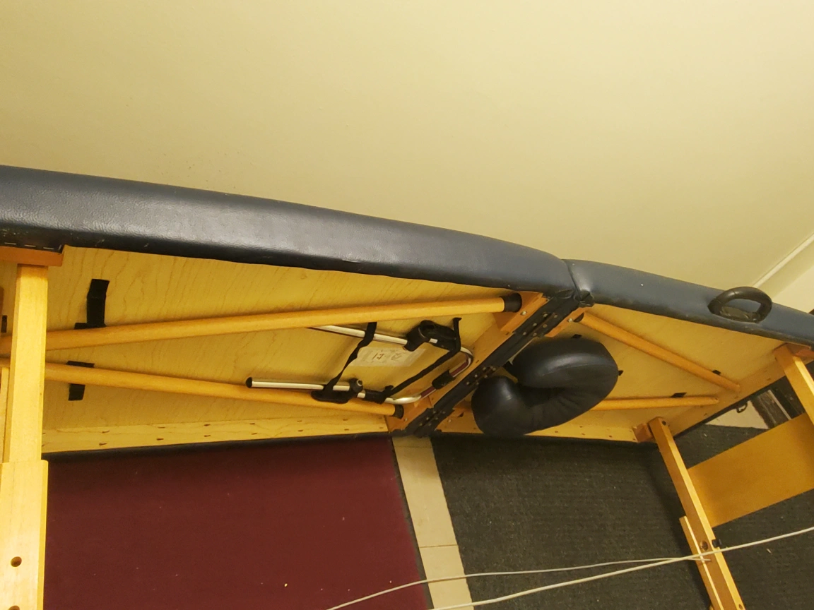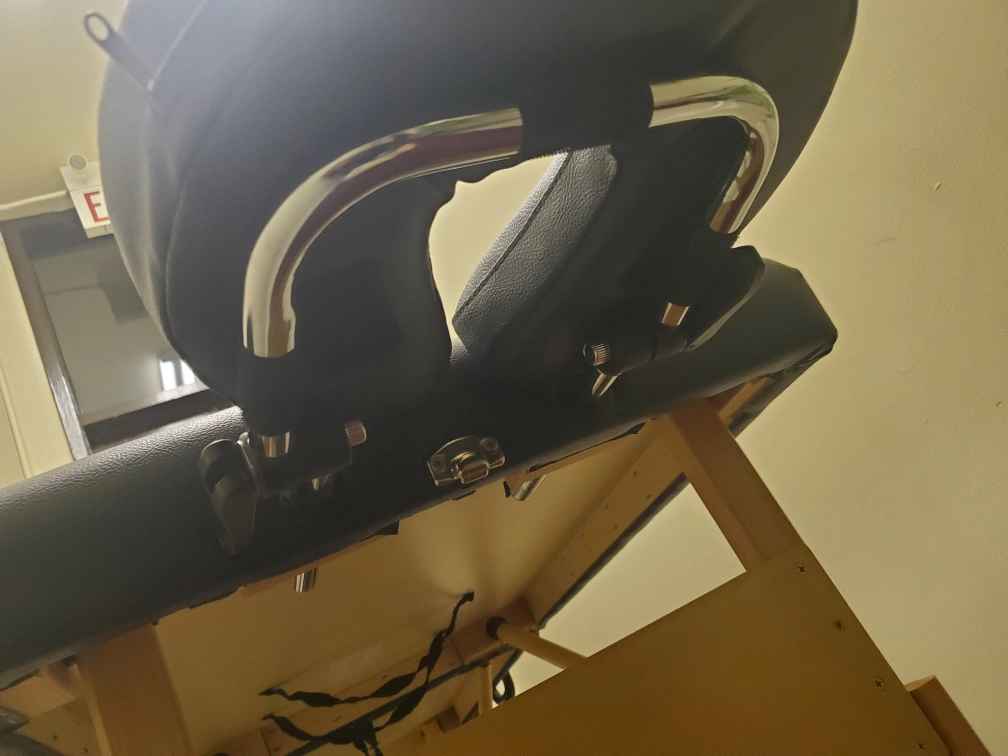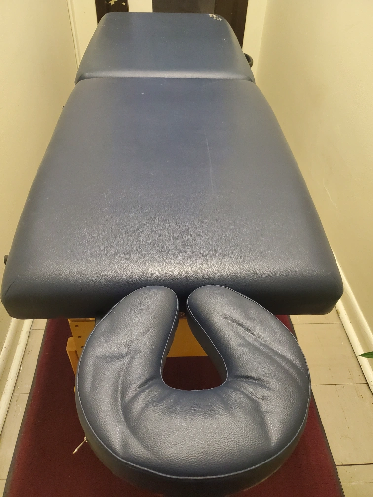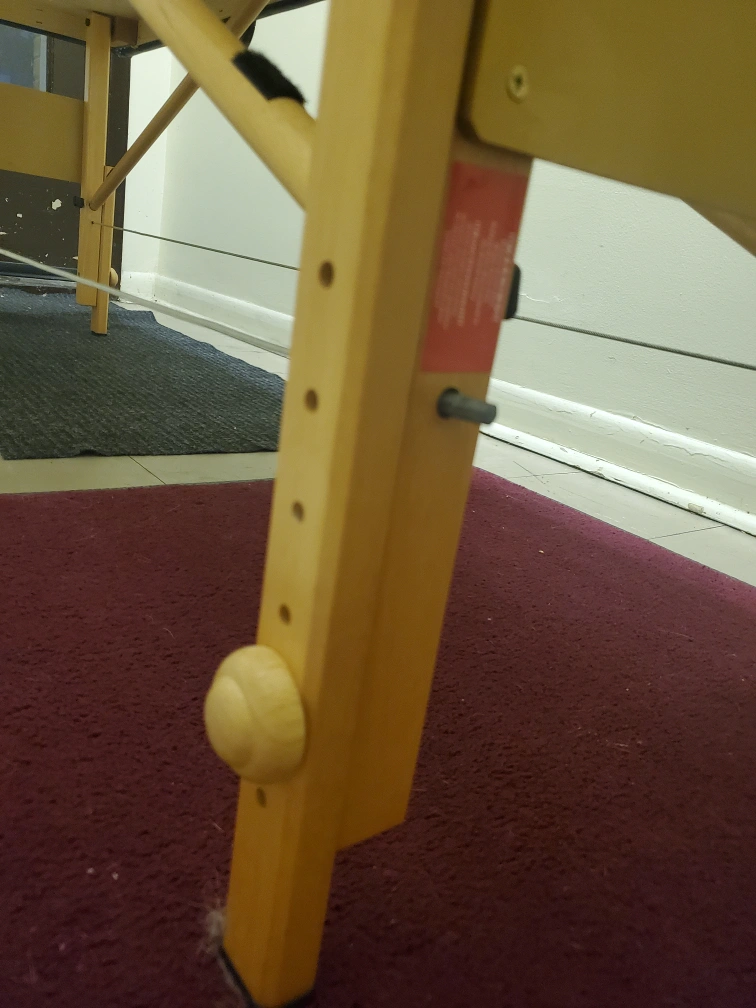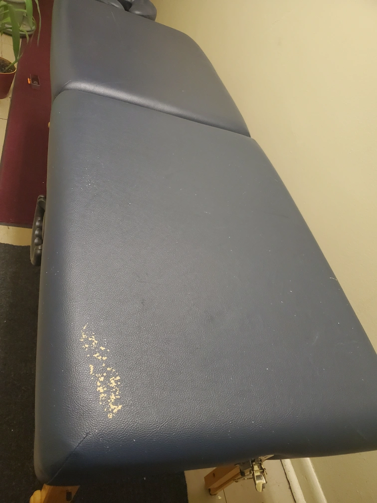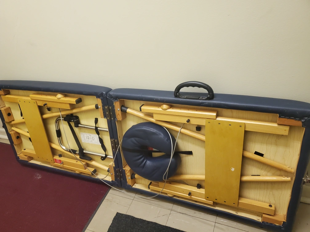 83Selling a massage table in blue. It has adjustable legs and a headrest. There are some signs of wear on the surface (paint stains and light scratches from moving) but it's still in perfect working condition. 24"x68"x4" thickness