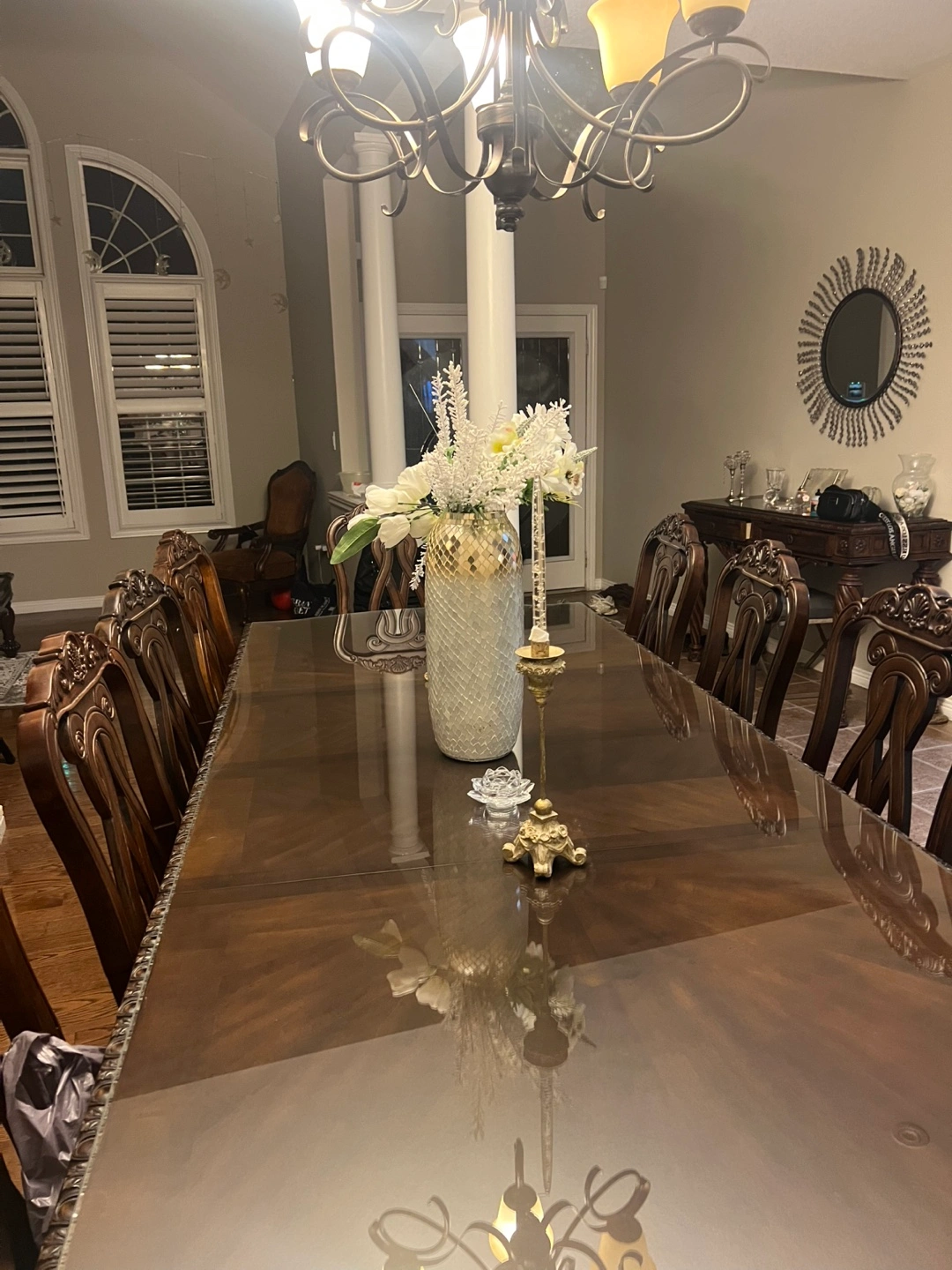 Ornate China Cabinet - Dark Wood and dining table with 10 chair