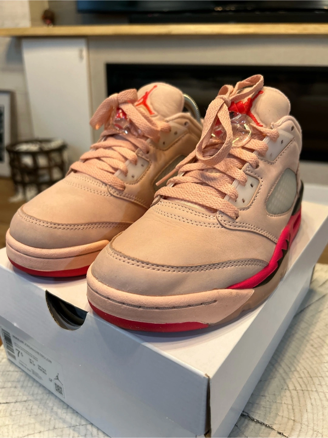 Selling a pair of Air Jordan 5 Retro Low for women in size 7.5. They come with the original box. The shoes are in excellent condition and ready for a new home!