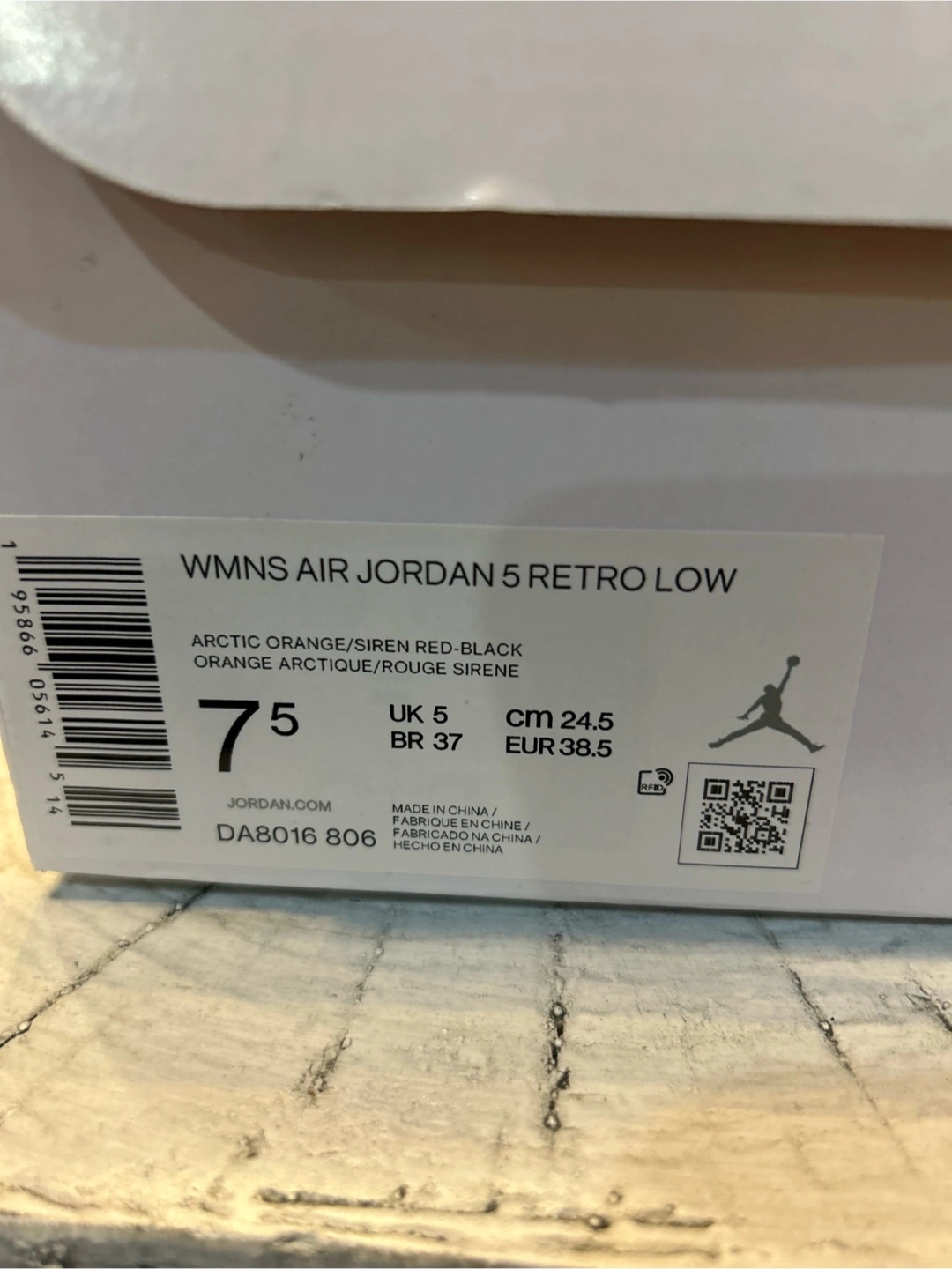 Selling a pair of Air Jordan 5 Retro Low for women in size 7.5. They come with the original box. The shoes are in excellent condition and ready for a new home!