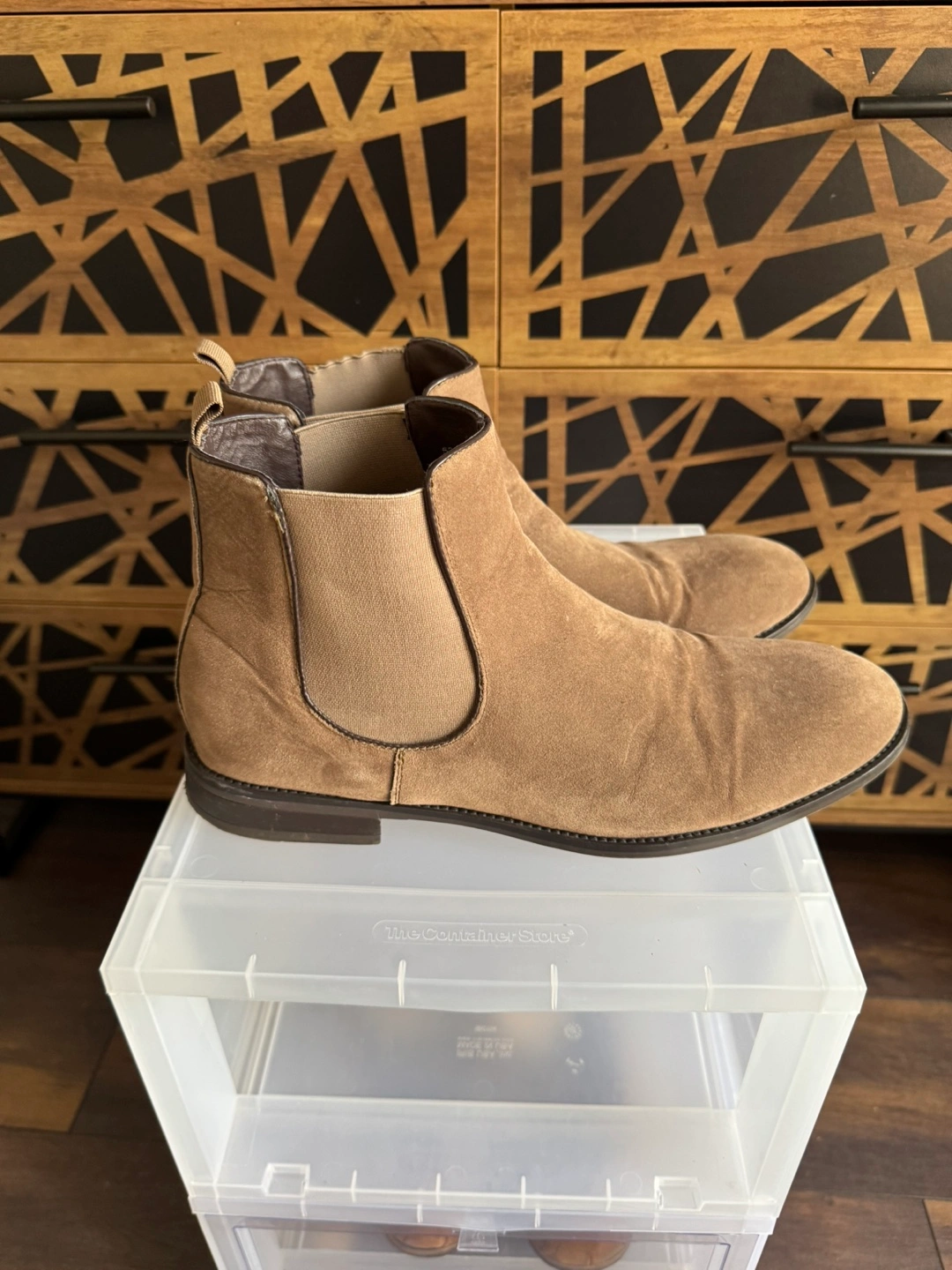 Selling a pair of New Look men's Chelsea boots in a nice brown suede. They are in good condition and size 11. A classic style that would look great with many outfits!