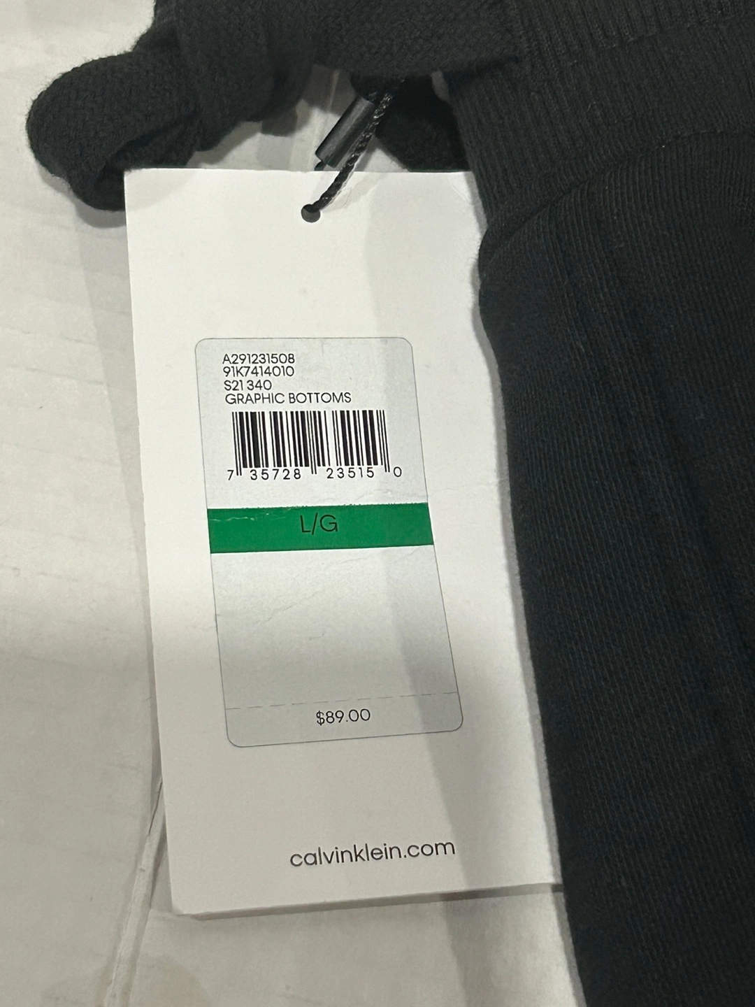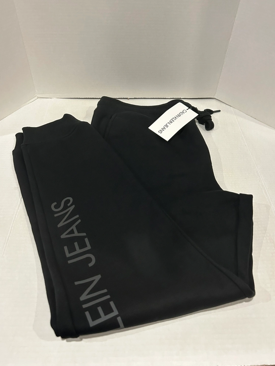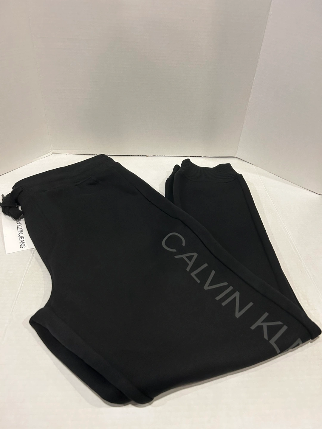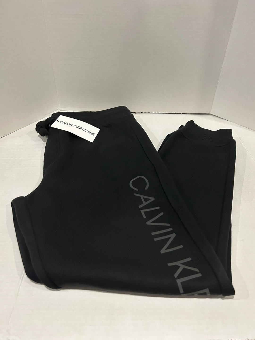 These are a pair of Calvin Klein Joggers with graphic Bottoms in black. They are a size L/G and are in new!! condition. Tag shows original price of $89.00