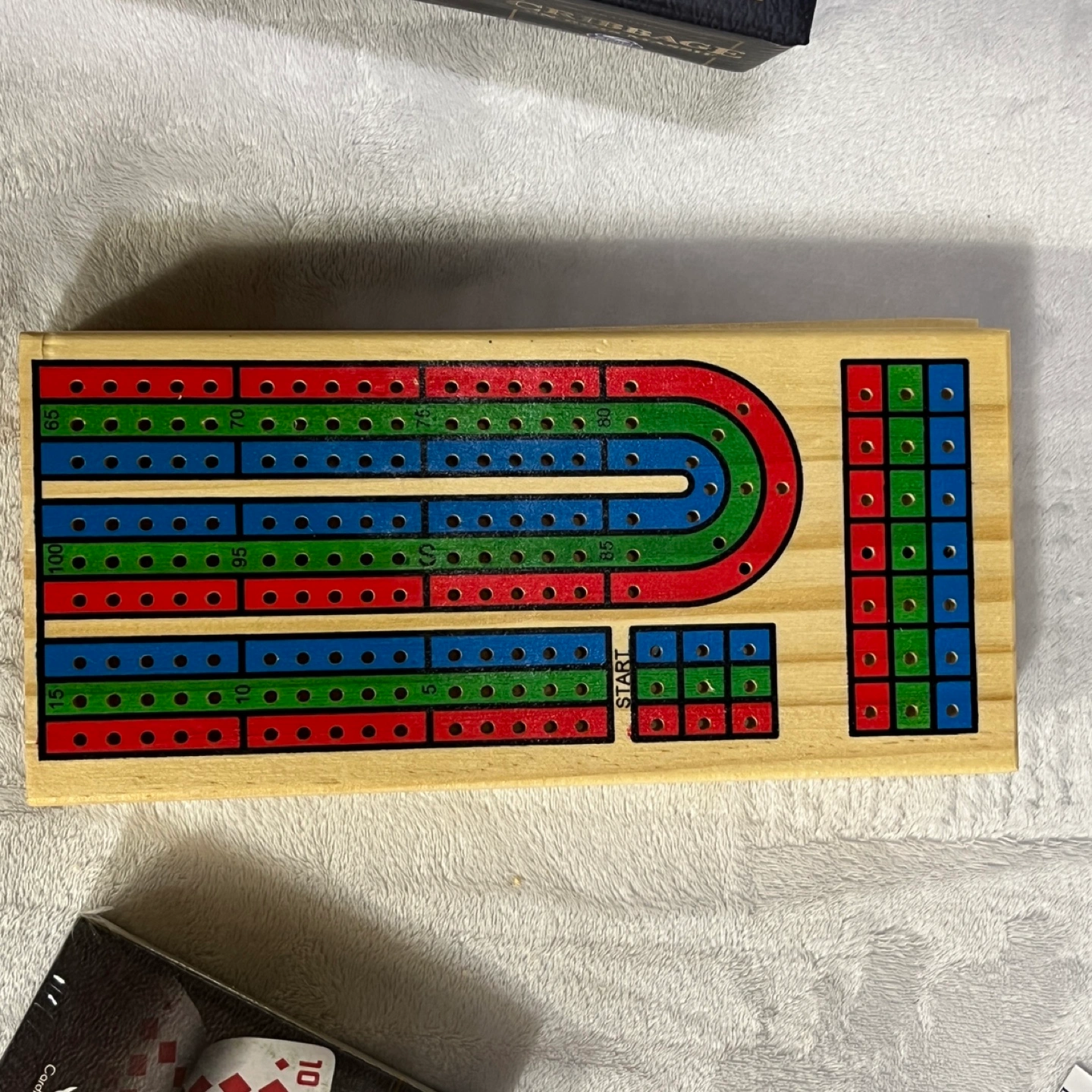 - Solid wood cribbage board
