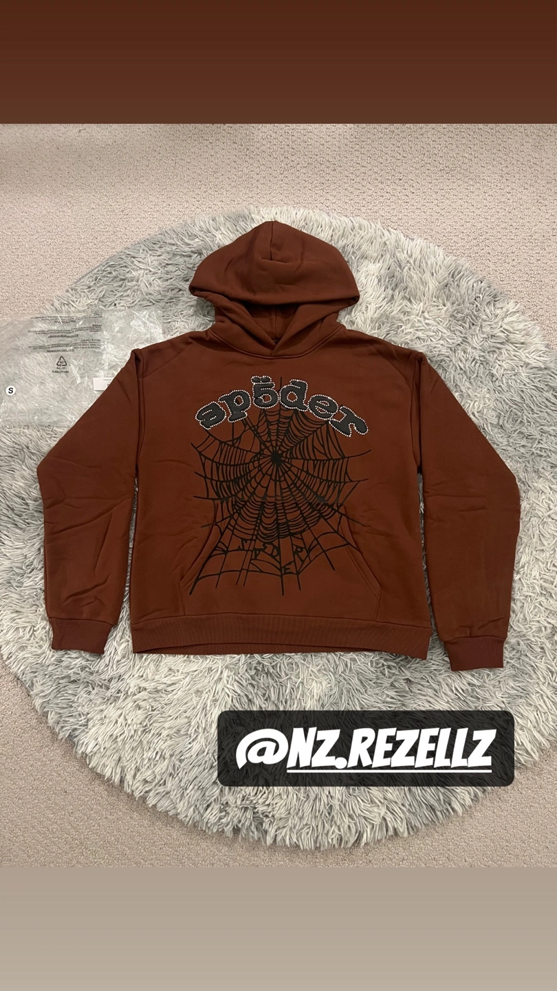 Brown/Black OG Web Rhinestone Sp5der Hoodie