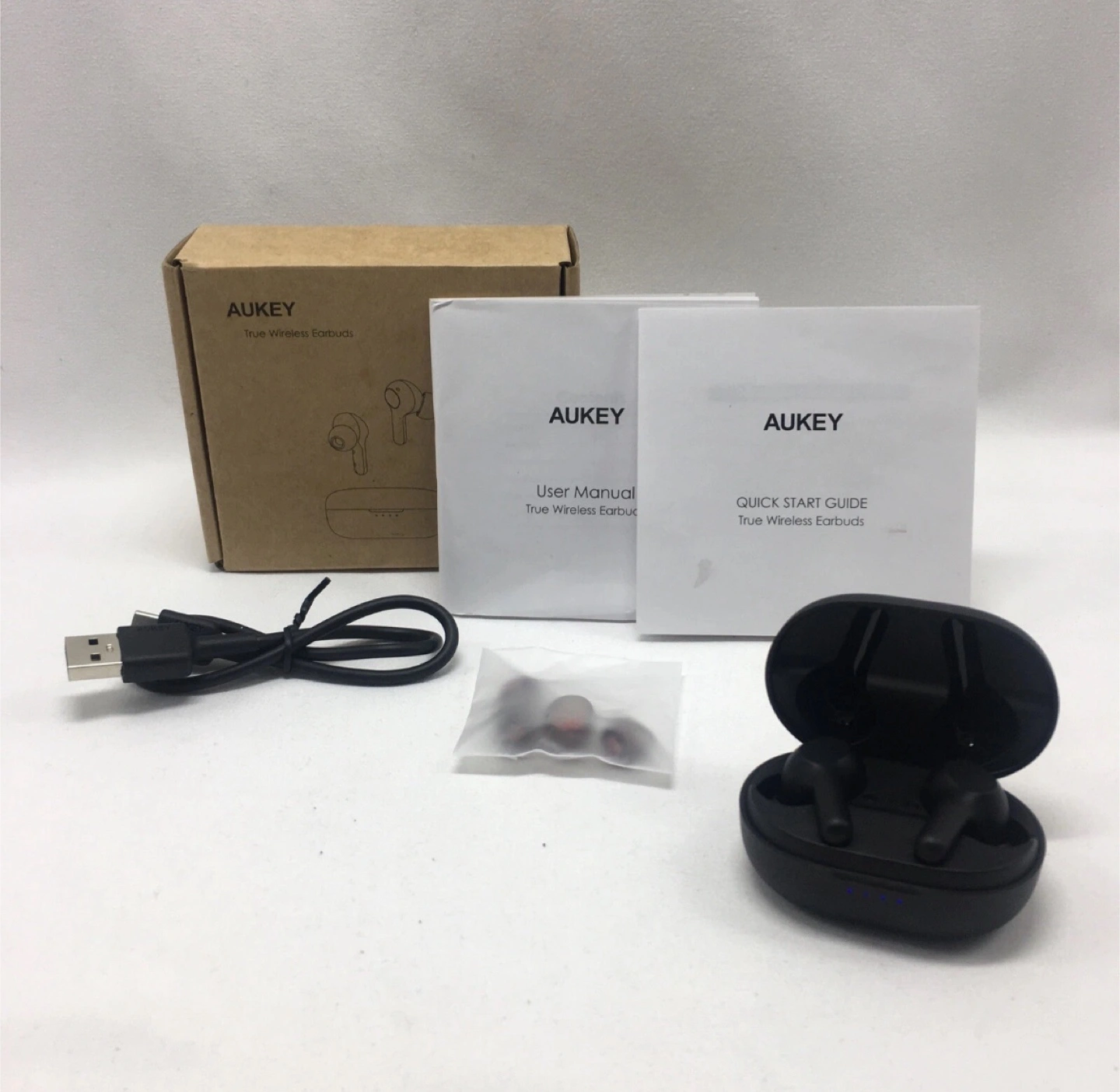 Selling a pair of Aukey True Wireless Earbuds in excellent condition! They come with the original box, user manual, quick start guide, charging cable, and extra earbud tips. Enjoy up to 25 hours of playtime with the charging case!