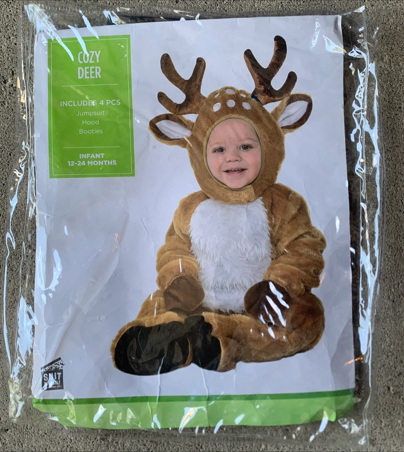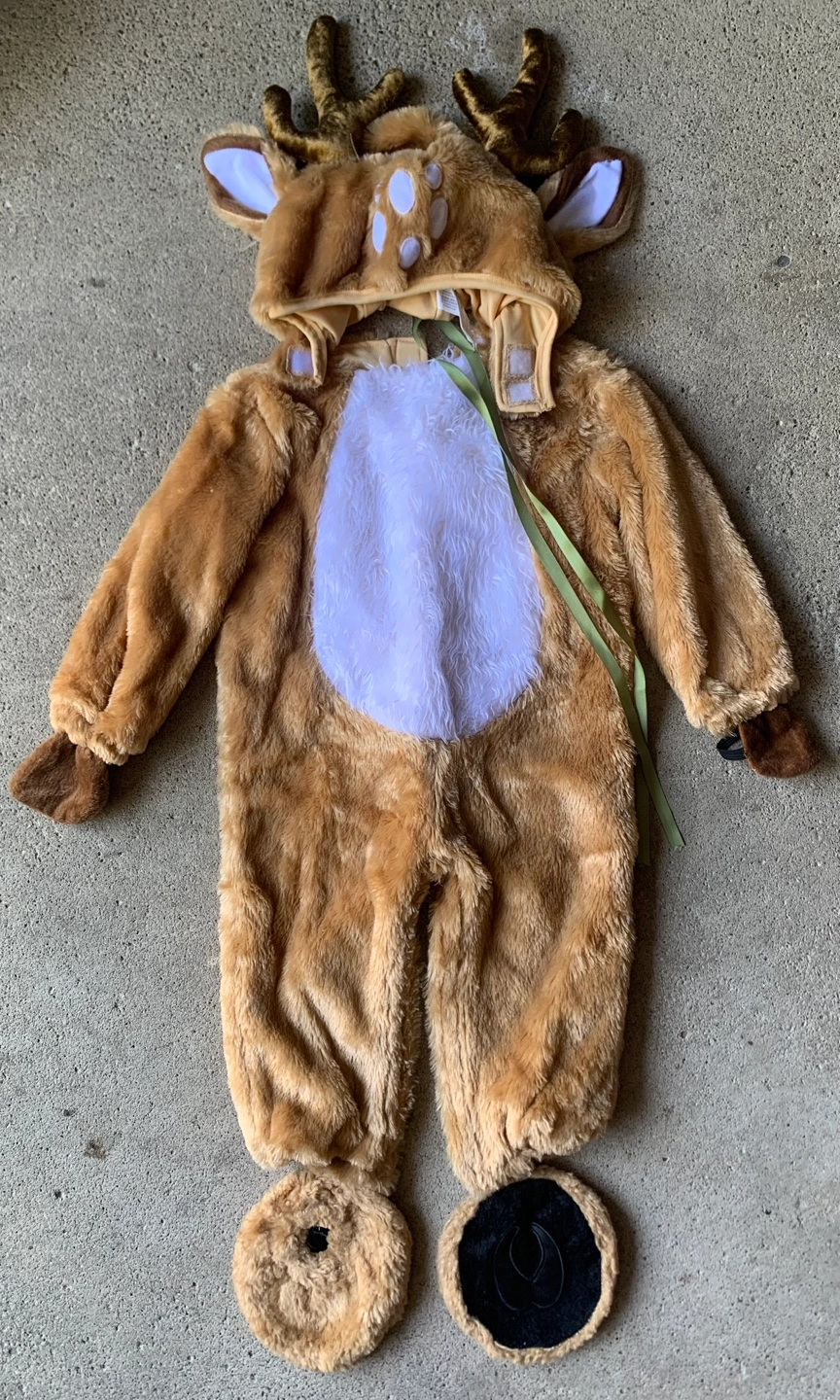 12Selling a gently used Cozy Deer infant costume! It's super adorable and includes four pieces: a jumpsuit, hood, and booties. Perfect for little ones aged 12-24 months. Your little one will look absolutely precious in this!