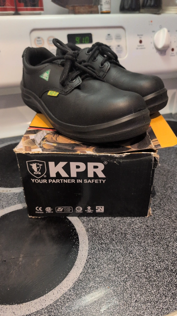Selling a pair of KPR safety shoes in black, size 6.5 mens. These shoes are in good condition and come with the original box. Perfect for work or any activity requiring safety footwear!