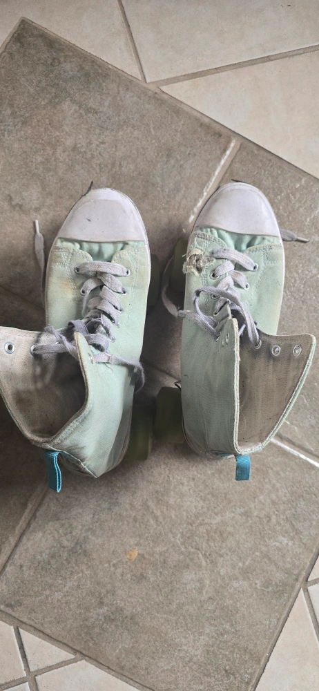 Selling a pair of Converse roller skates in size 9. They show some signs of wear, but are still in good working condition! the sole on the right is a little loose but still in working condition.