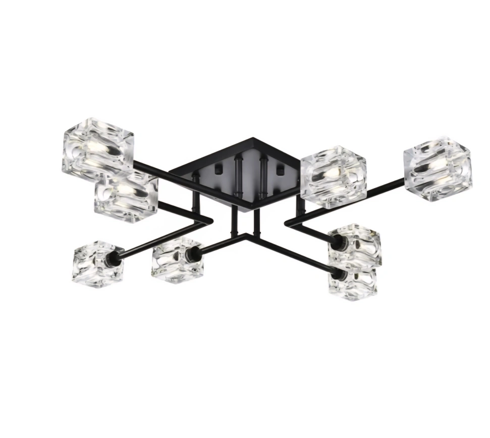 Selling an Elegant Lighting LD920F32 ceiling light. It features a modern design with clear cube-shaped glass shades and a black frame. This stylish light fixture would be a great addition to any room!