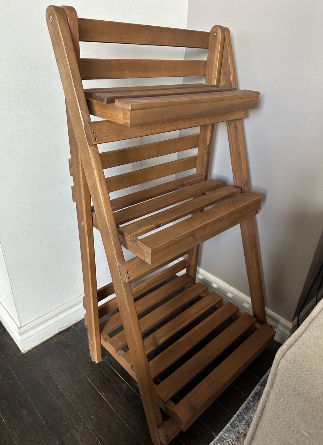 Buy & SellWooden shelf | shoe rack | plant stand - foldableWooden shelf | shoe rack | plant stand - foldable$353-tier solid wood shelf in excellent condition. Folds up for easy storage or transport. Pick up only.Dimensions50x39x92cmWHERE TO MEETCheck LocationView MapSELLERverifiedMonicaRosedale28721 reviews3 chats·14 favorites·257 viewsSEND CHAT TO SELLERHi Monica! I’m interested in your listing.Hi Monica! I’m interested in your listing.Get the Karrot app to chatSign In to chat
