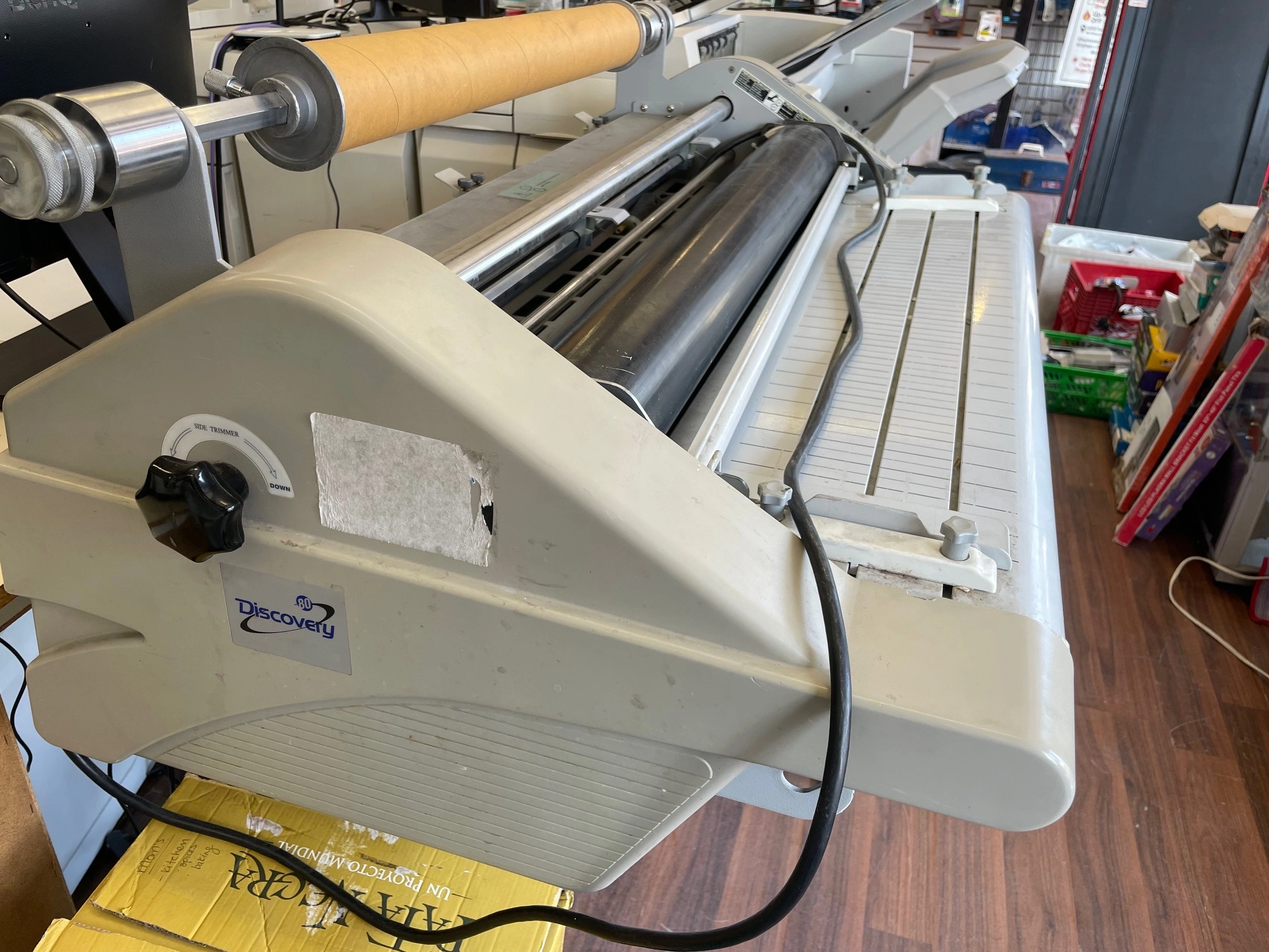 The GBC Discovery 80 High Speed 31″ is a production unit designed for commercial printing or in-house production environments. It is four times faster than most office units. The unique crowned rollers and infrared heating system provide optimum output quality even at higher speeds. The Discovery 80 is a free-standing, heat shoe laminator with exclusive infrared heating, independent top and bottom temp controls, programmable job settings and on-the-fly adjustments. Handles up to 10mil on rolls up to 2000″.