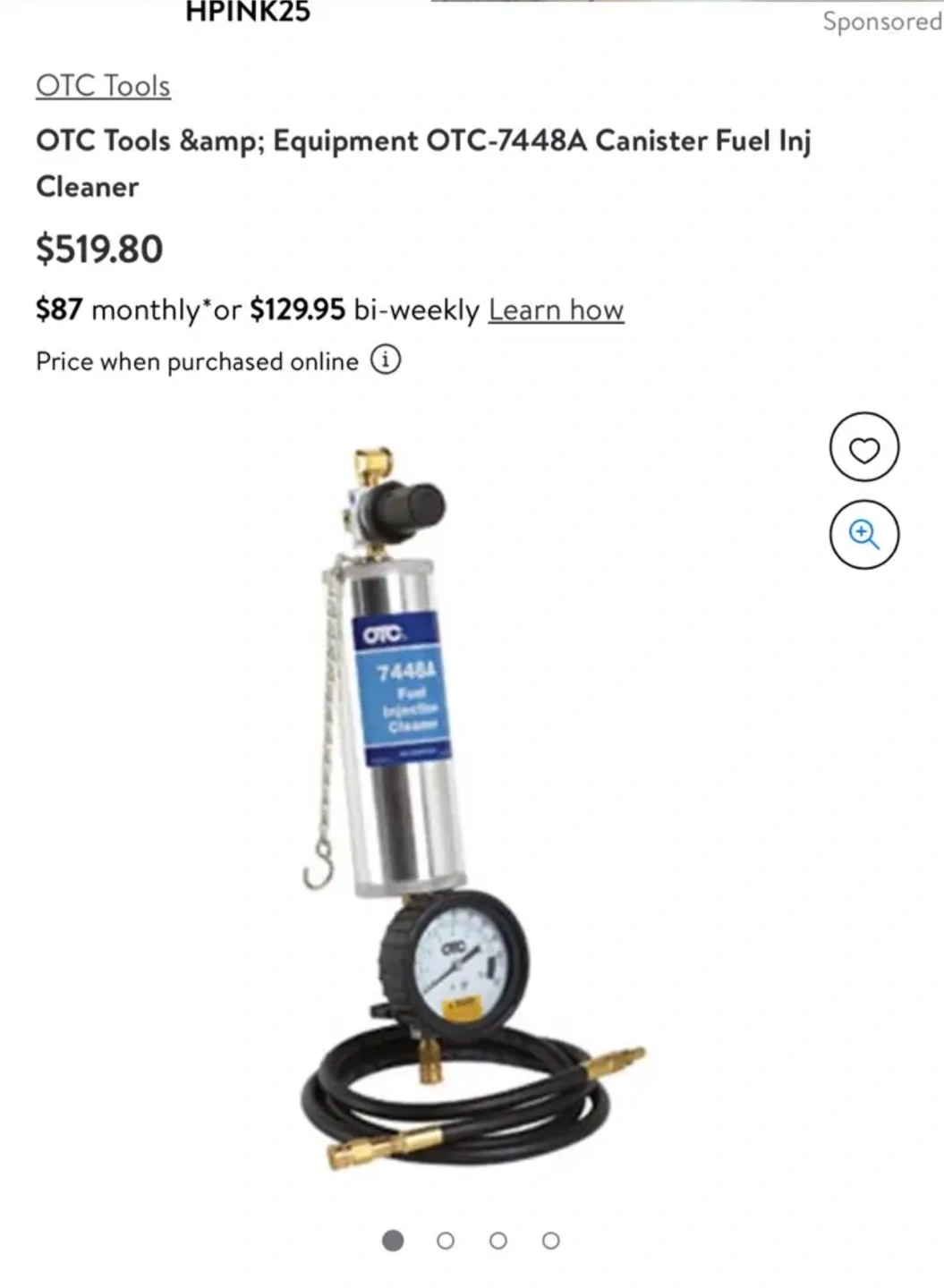 43OTC Tools (7448A) Fuel Injection Cleaner Canister Retail Amazon: $525.05 + tax Walmart: $519.80 + tax Asking: $350 Brand new never used Comes in box opened for photos Pick Up Waterdown Area