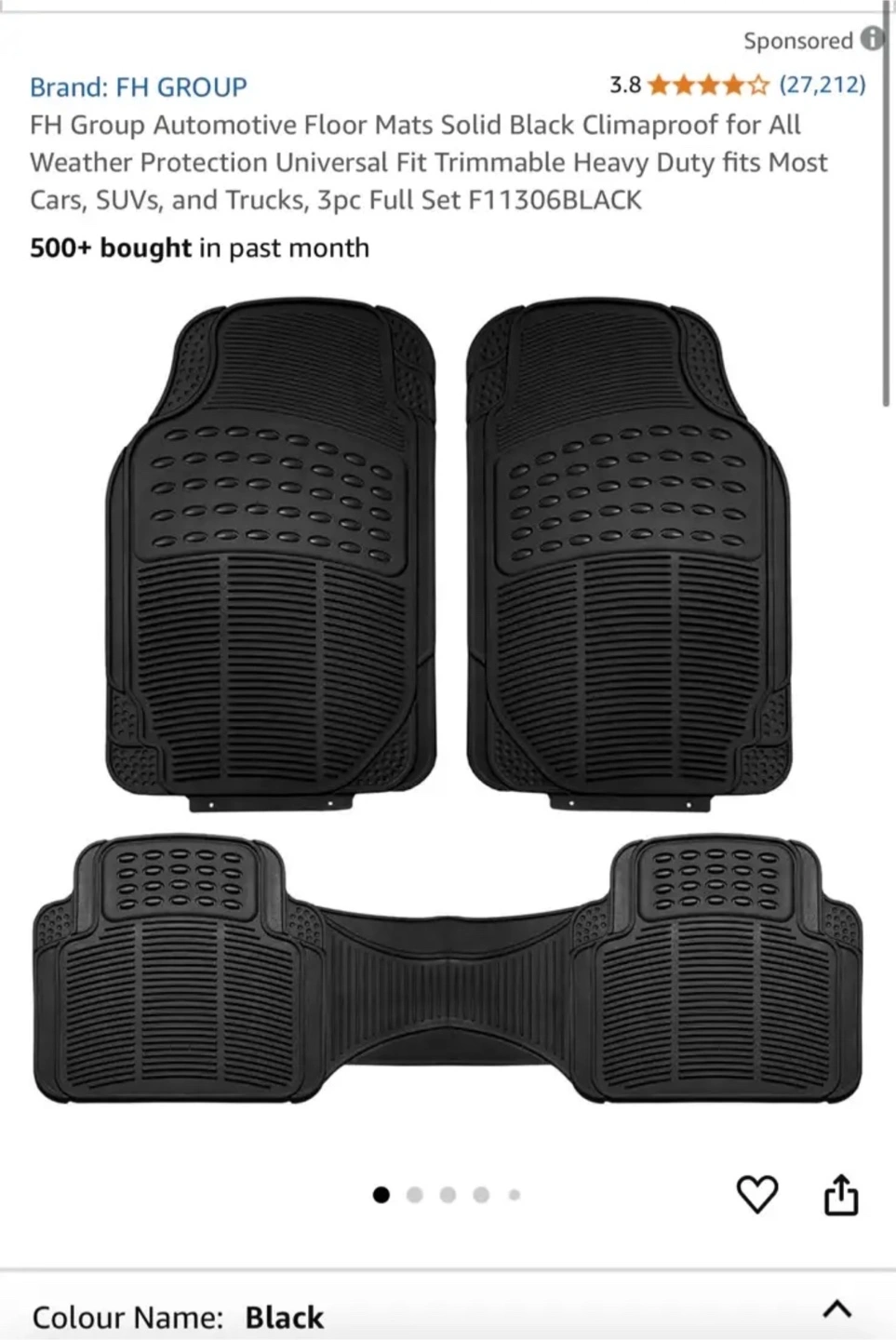 FH Group Automotive Floor Mats Solid Black Climaproof for All Weather Protection Universal Fit Trimmable Heavy Duty fits Most Cars, SUVs, and Trucks, 3pc Full Set F11306BLACK