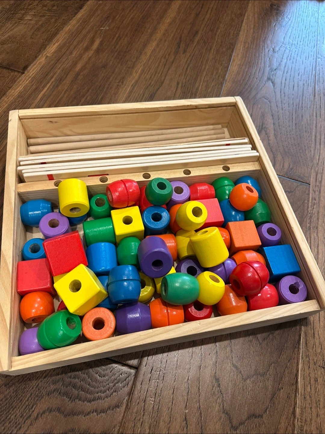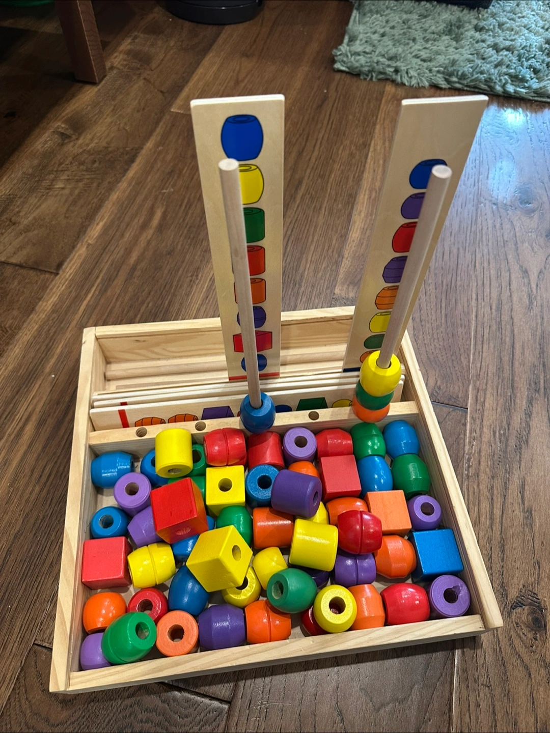 131Melissa & Doug shape sequencing stacker toy. Great for kids age 3+ In great condition. Divided box included, no lid.