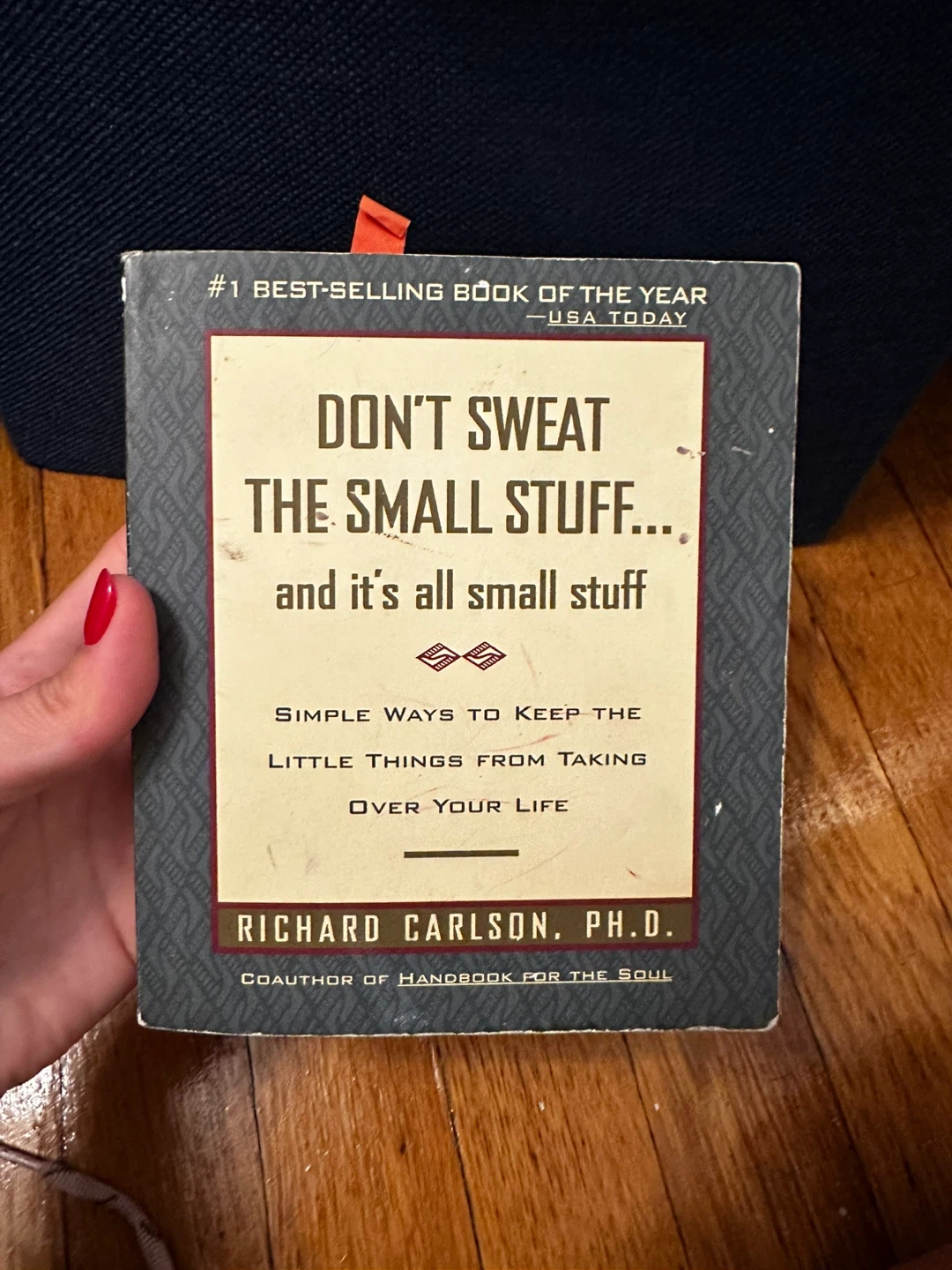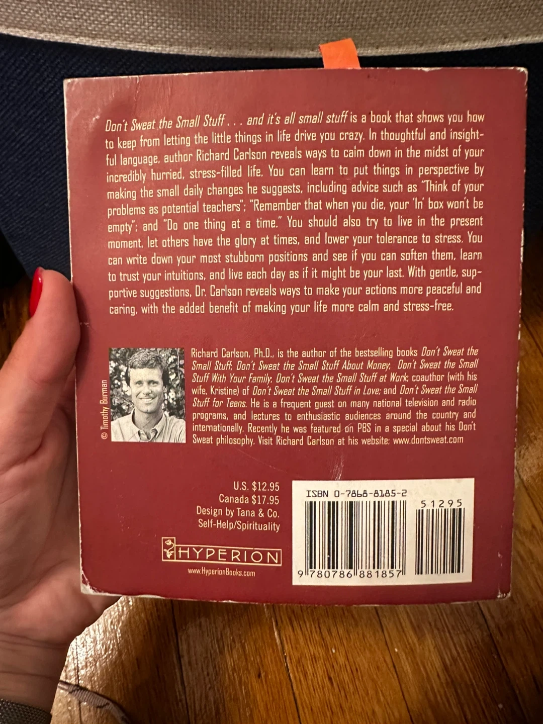 Selling the book "Don't Sweat the Small Stuff... and it's all small stuff" by Richard Carlson, Ph.D. It is a book that shows you how to keep from letting the little things in life drive you crazy. It suggests ways to calm down in the midst of your incredibly hurried, stress-filled life. It is a self-help/spirituality book.