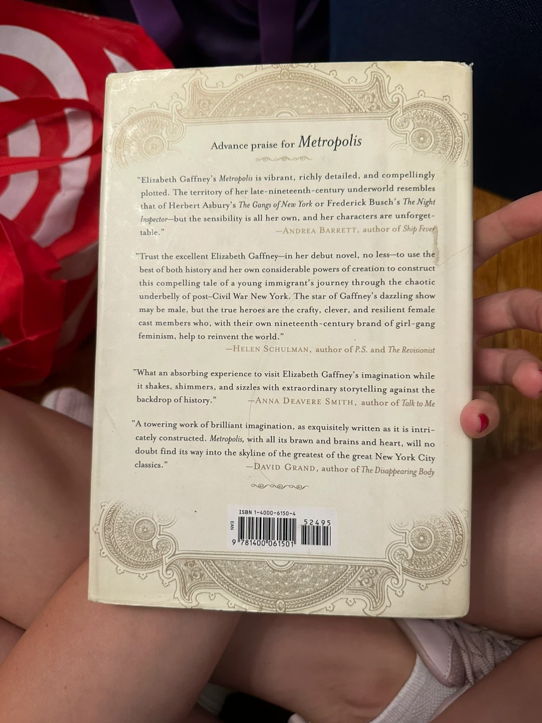 Selling a copy of Metropolis by Elizabeth Gaffney. It's a novel that tells a compelling tale of a young immigrant's journey through the chaotic underbelly of post-Civil War New York