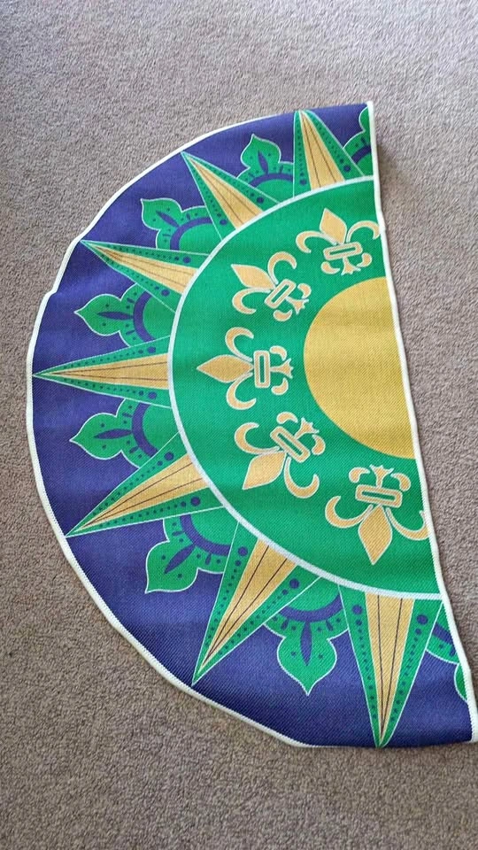 Semicircle shape entrance door rug, shoes scraper mat, dirt trapper front door mat. PVC material, suitable for indoor and outdoor use. Easy to clean. Measures 15.74x31.49 inches.