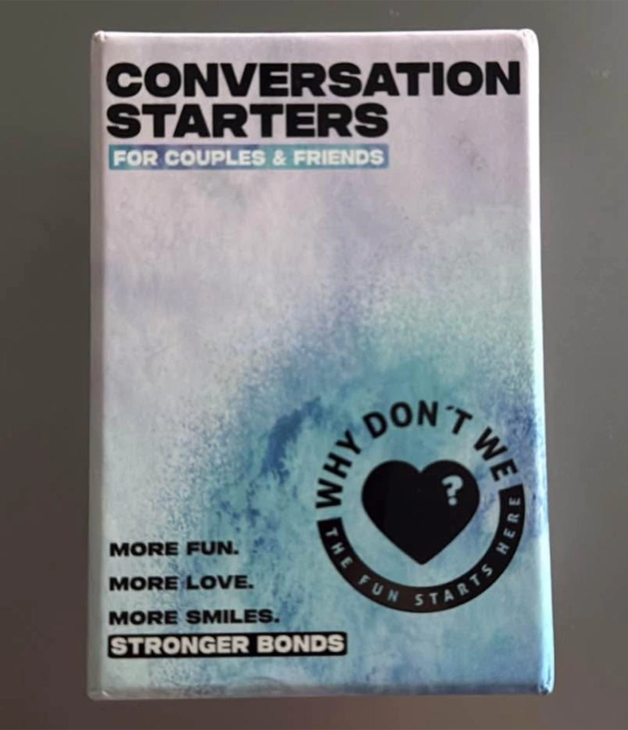 Looking to spark some fun and meaningful conversations? This Why Don't We conversation starters card game is perfect for couples and friends! The box includes 6 types of cards to help you break the ice and build stronger bonds. Get ready for more love, more smiles, and more fun!