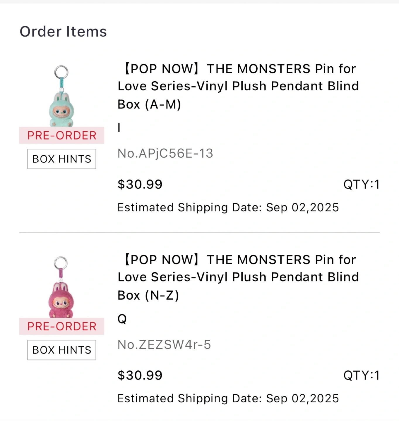 Selling a cute vinyl plush pendant from THE MONSTERS Pin for Love Series! ( I got I and Q)