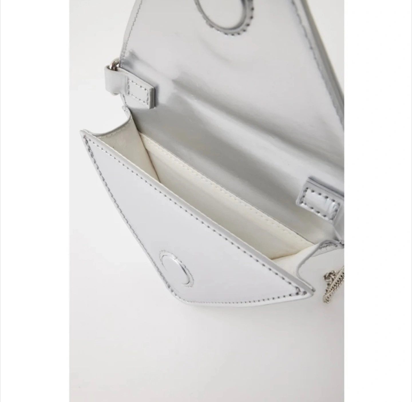 Selling a cute Moussy triangle chain bag! It's a unique and stylish accessory, perfect for adding a bit of edge to any outfit. The silver colour is super versatile, and the chain adds a touch of elegance. It's in great condition and ready for a new home!