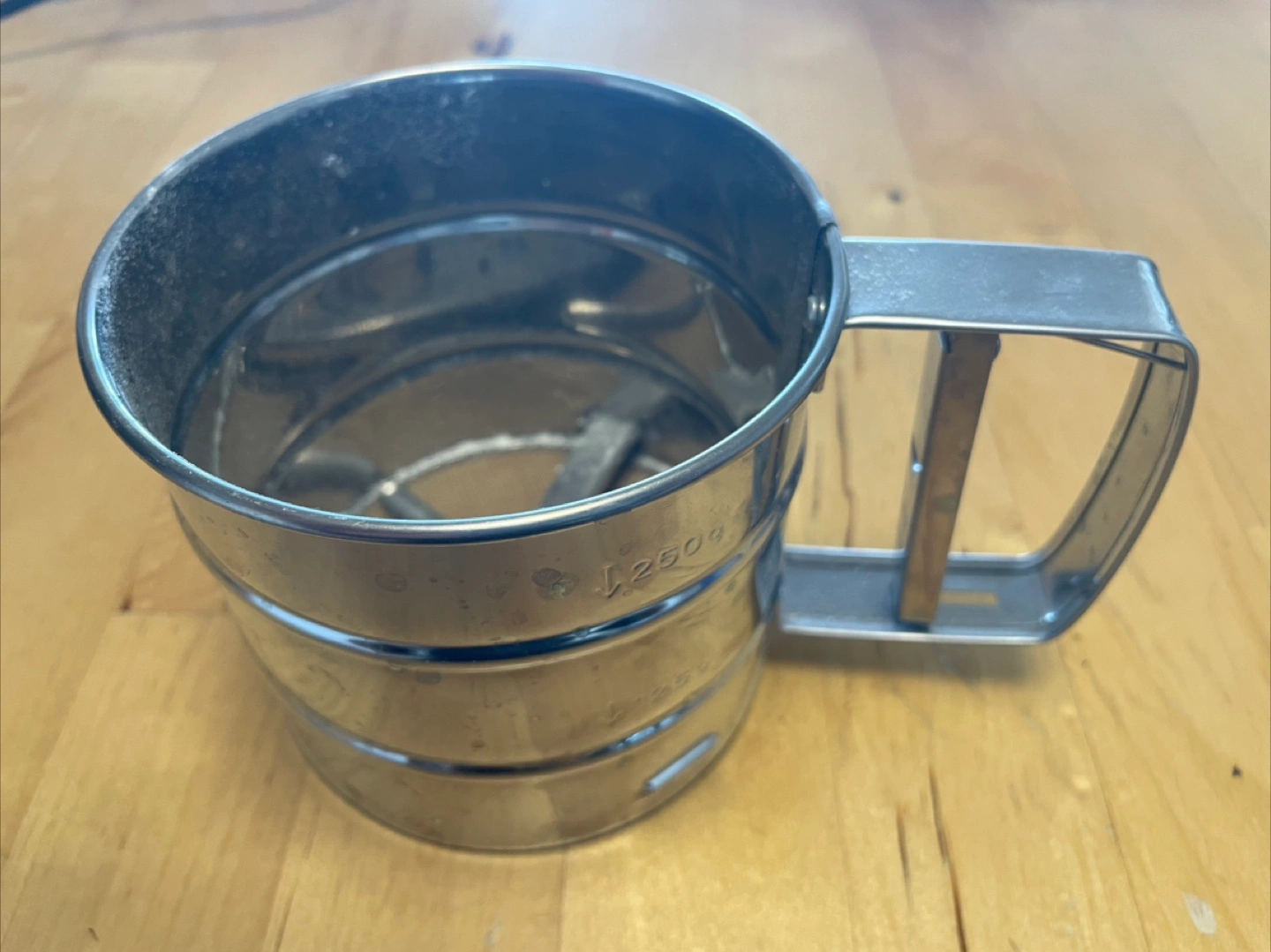 Selling a Toastmaster hand mixer along with a metal flour sifter and a 12-cup muffin tin. These items are in good condition and ready for your baking needs! Perfect for whipping up delicious treats in your kitchen