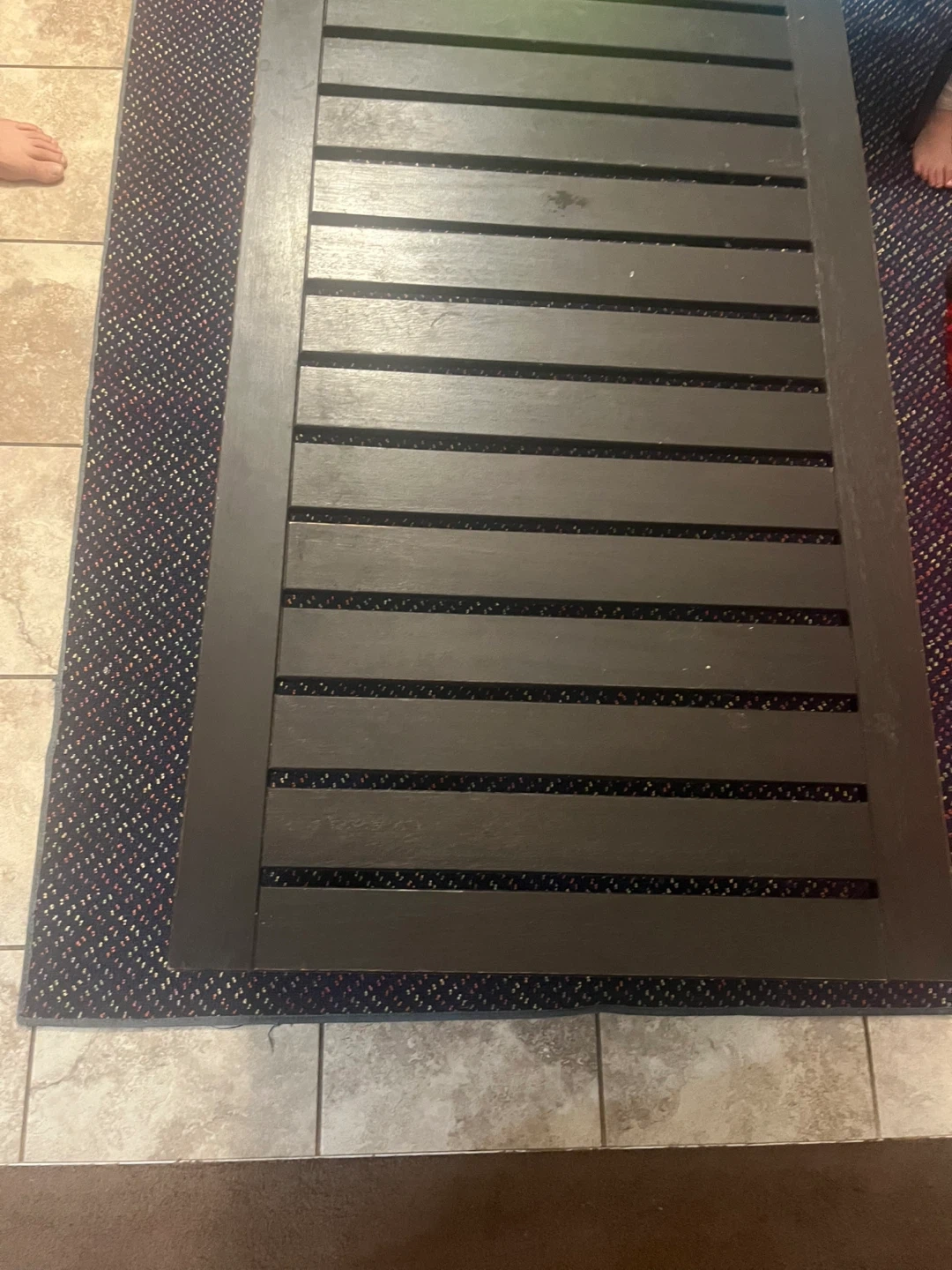 Selling a coffee table with a dark brown wood finish. The table features a slatted design, adding a touch of modern style to your living room. It's in good condition and ready for a new home