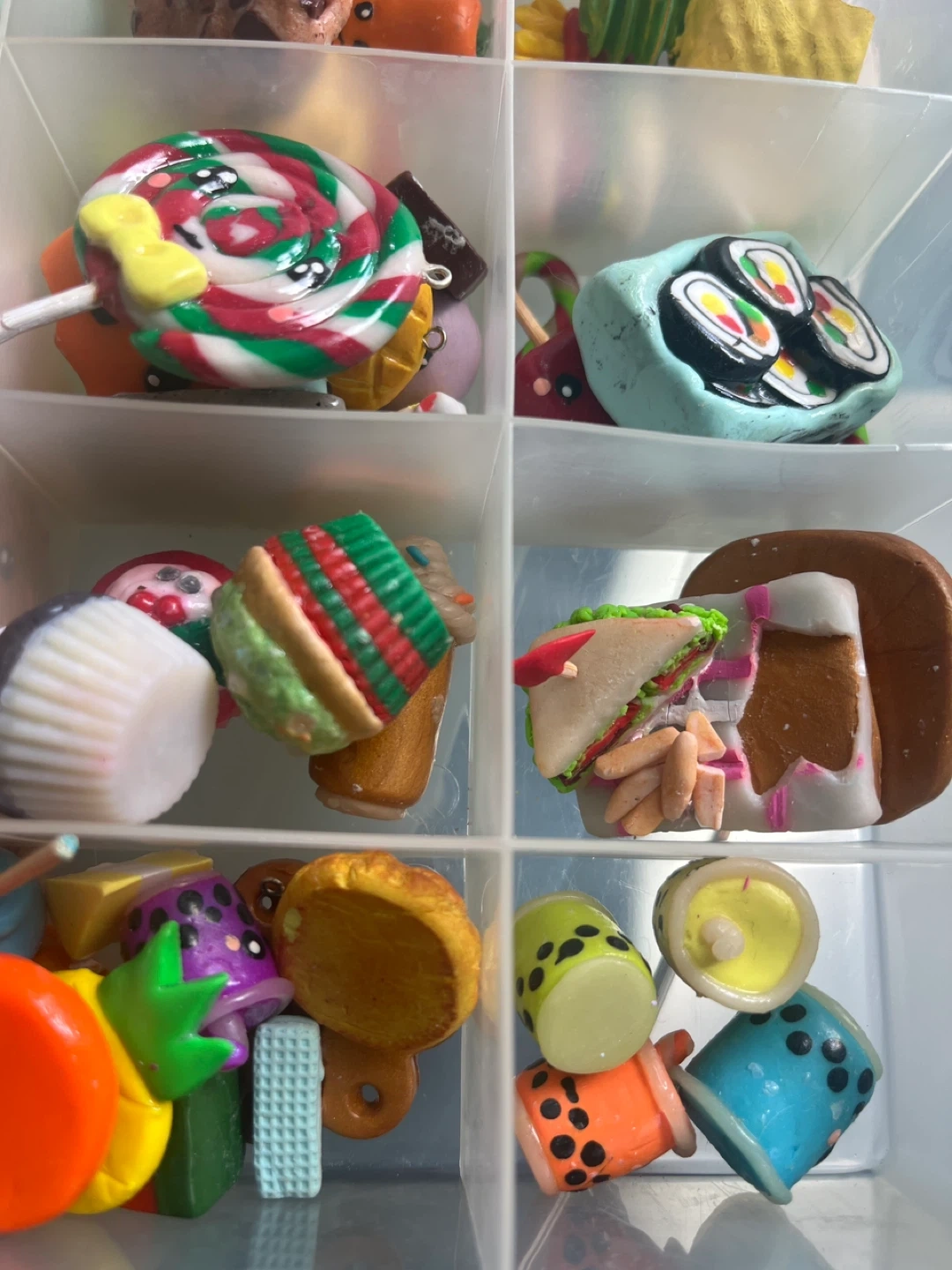Check out this super cute collection of handmade food charms! They look like tiny versions of all sorts of yummy treats, from sushi and sandwiches to cupcakes and lollipops. Perfect for adding a fun touch to your accessories or crafts!