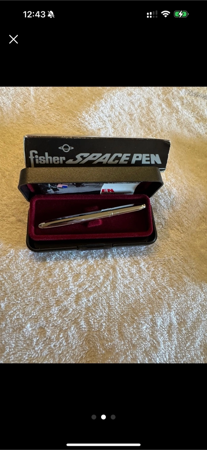 Selling a Fisher Space Pen, complete with its original box! It's in great condition and ready for a new home. This pen is perfect for anyone who appreciates a unique writing experience. Feel free to reach out if you're interested!