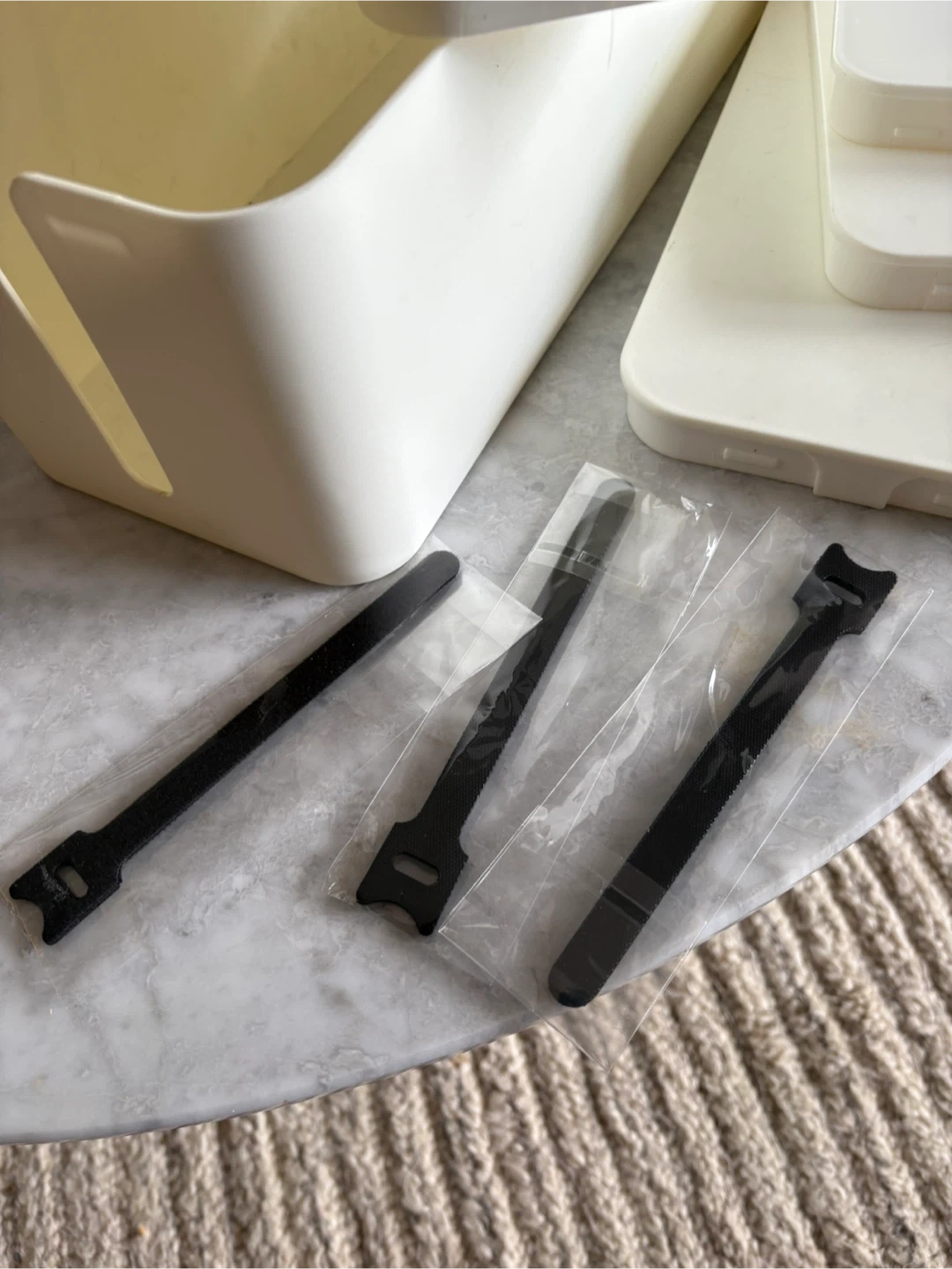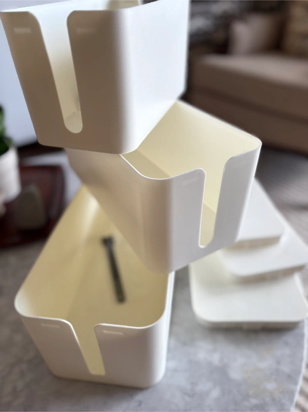 Selling a set of cable management organizer boxes! These are great for tidying up your desk, TV area, or computer setup. The set includes 3 sizes to fit plugs and switches of all shapes. Also includes some cable ties. The set is white (pics of black set for reference). Large one gently used. Snap and medium never used. Pickup at King St W and Shaw