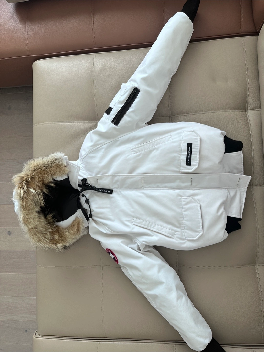 Selling a Canada Goose jacket in white, size XS. It's in great condition and ready to keep you warm this winter!