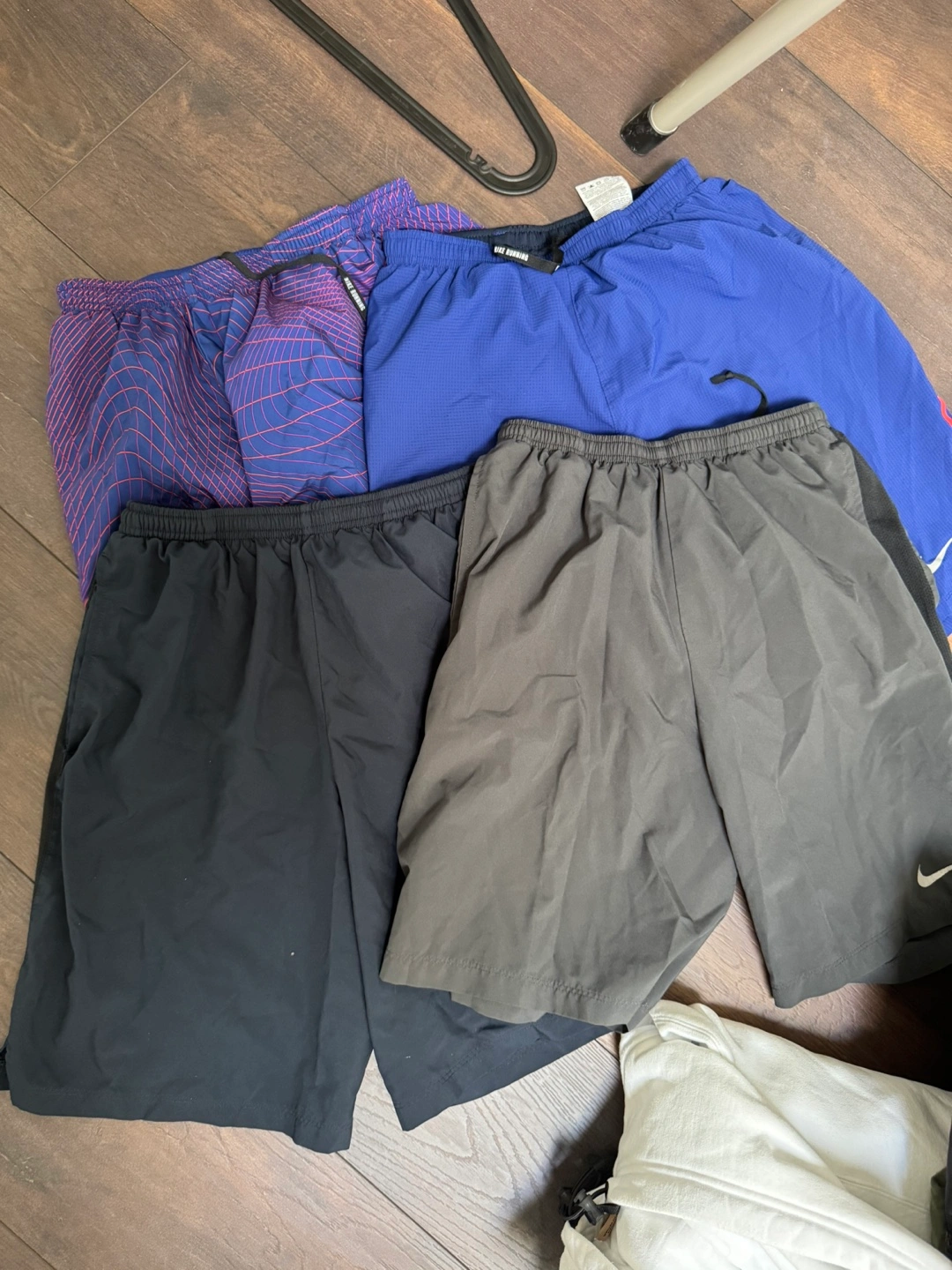 Selling a bundle of four Nike running shorts. They're in good used condition and ready for your next run! The bundle includes a variety of colours and designs.