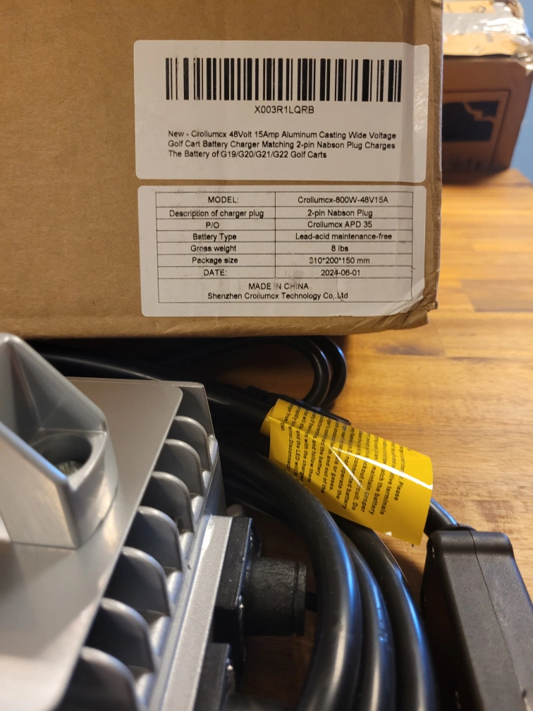 Selling a new Croliumcx-800W-48V-15A golf cart charger. It's designed for lead-acid maintenance-free batteries.