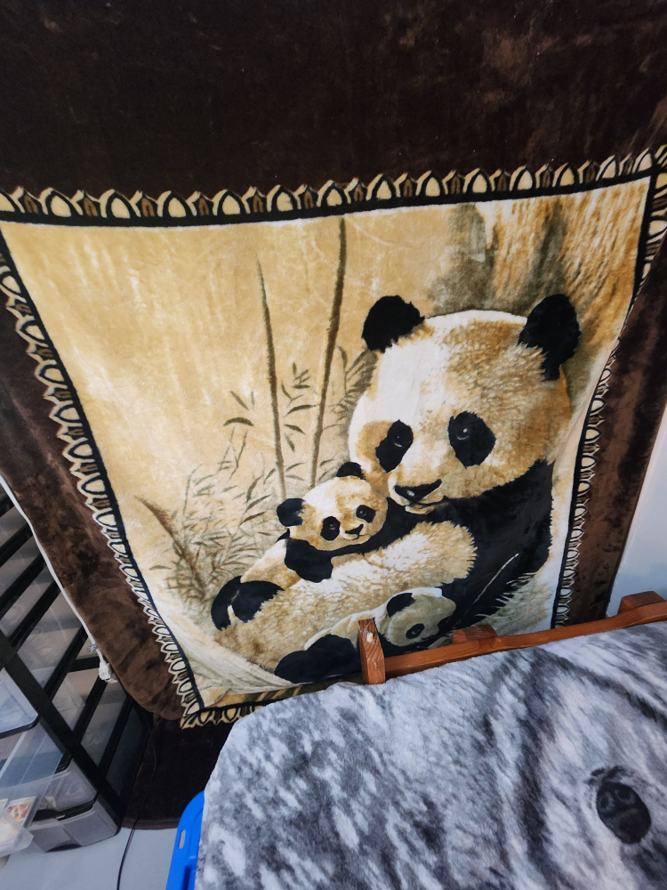 Selling a cozy blanket with a cute panda print! It's in great condition and would be perfect for snuggling up on the couch or adding a touch of whimsy to a kid's room
