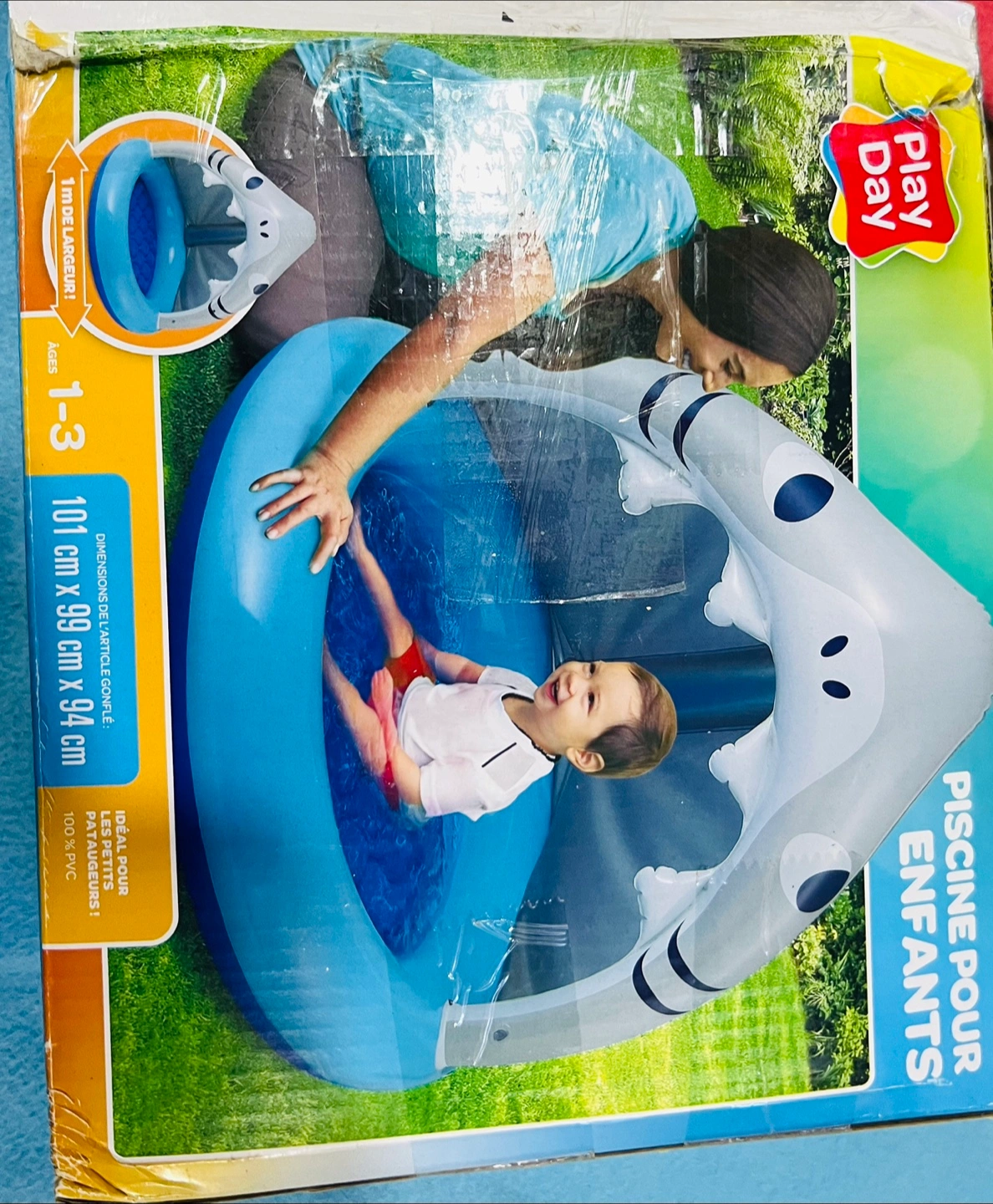 19Selling a Play Day kids' pool, perfect for little ones aged 1-3! The dimensions are 101 cm x 99 cm x 94 cm. It's ideal for small paddlers and made of 100% PVC