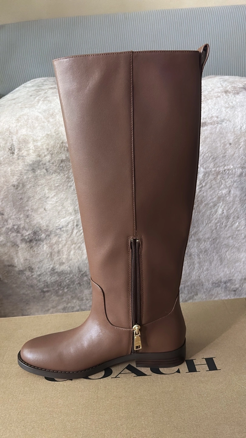 Brand new Coach Marlin Leather Boots They're a beautiful dark saddle colour, perfect for fall and winter. Size 7. Comes with the original box. These retail for $400 CAD!