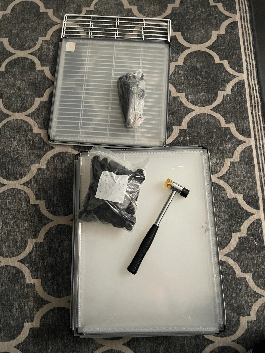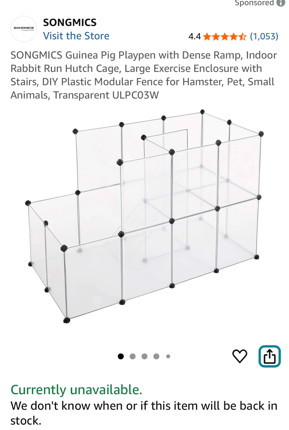 Selling a SONGMICS Guinea Pig Playpen! This modular fence is great for small animals like rabbits, hamsters, and guinea pigs. It's easy to assemble and provides a safe and fun space for your pet to play. Includes a hammer to assist with assembly.