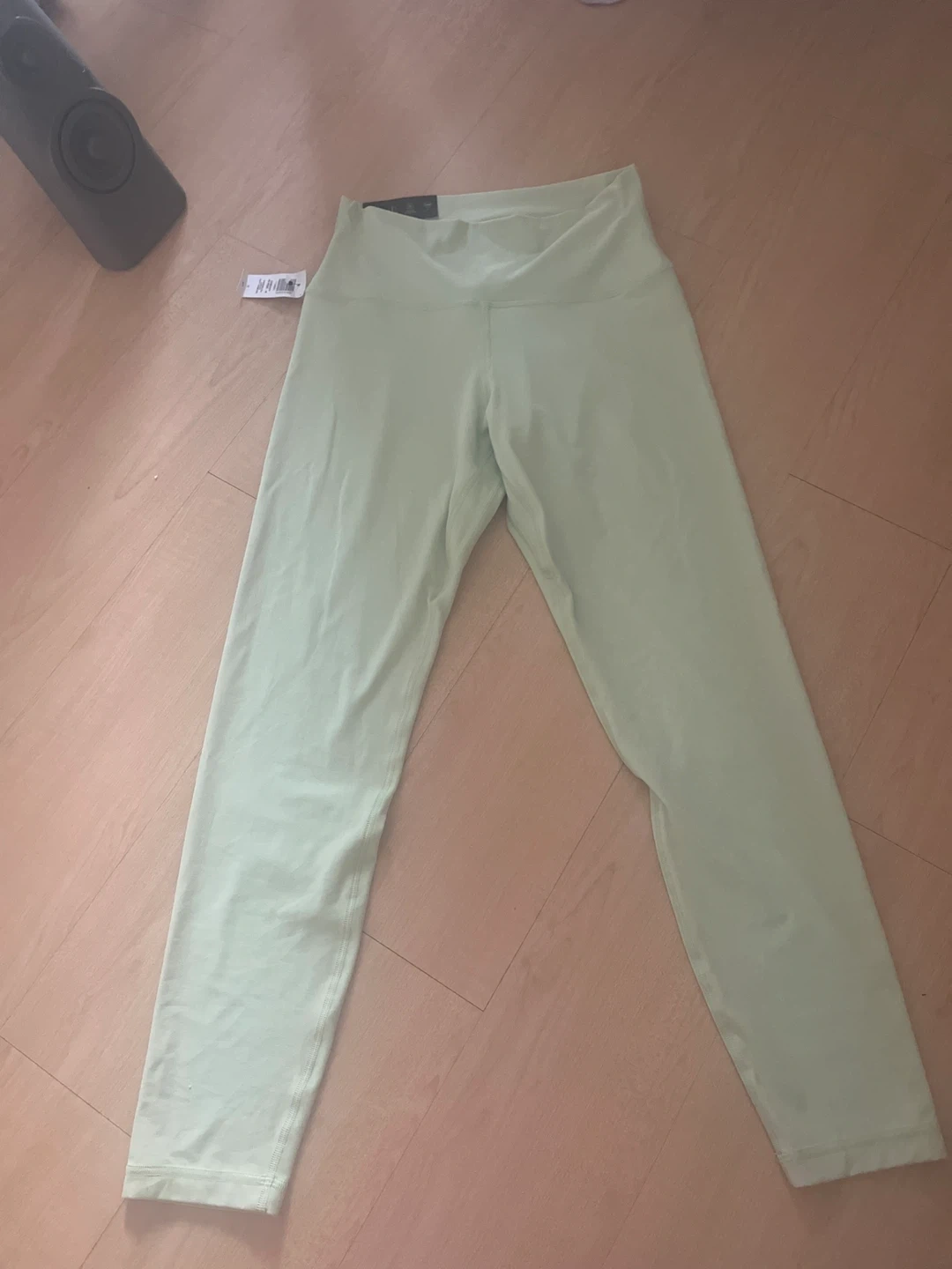 Selling a pair of Aritzia TNA Butter high-waisted leggings in a lovely light green colour. They are a size 10 fits a medium and appear to be in new condition with tags still attached! These leggings are known for their comfortable fit and soft material, perfect for workouts or lounging around the house