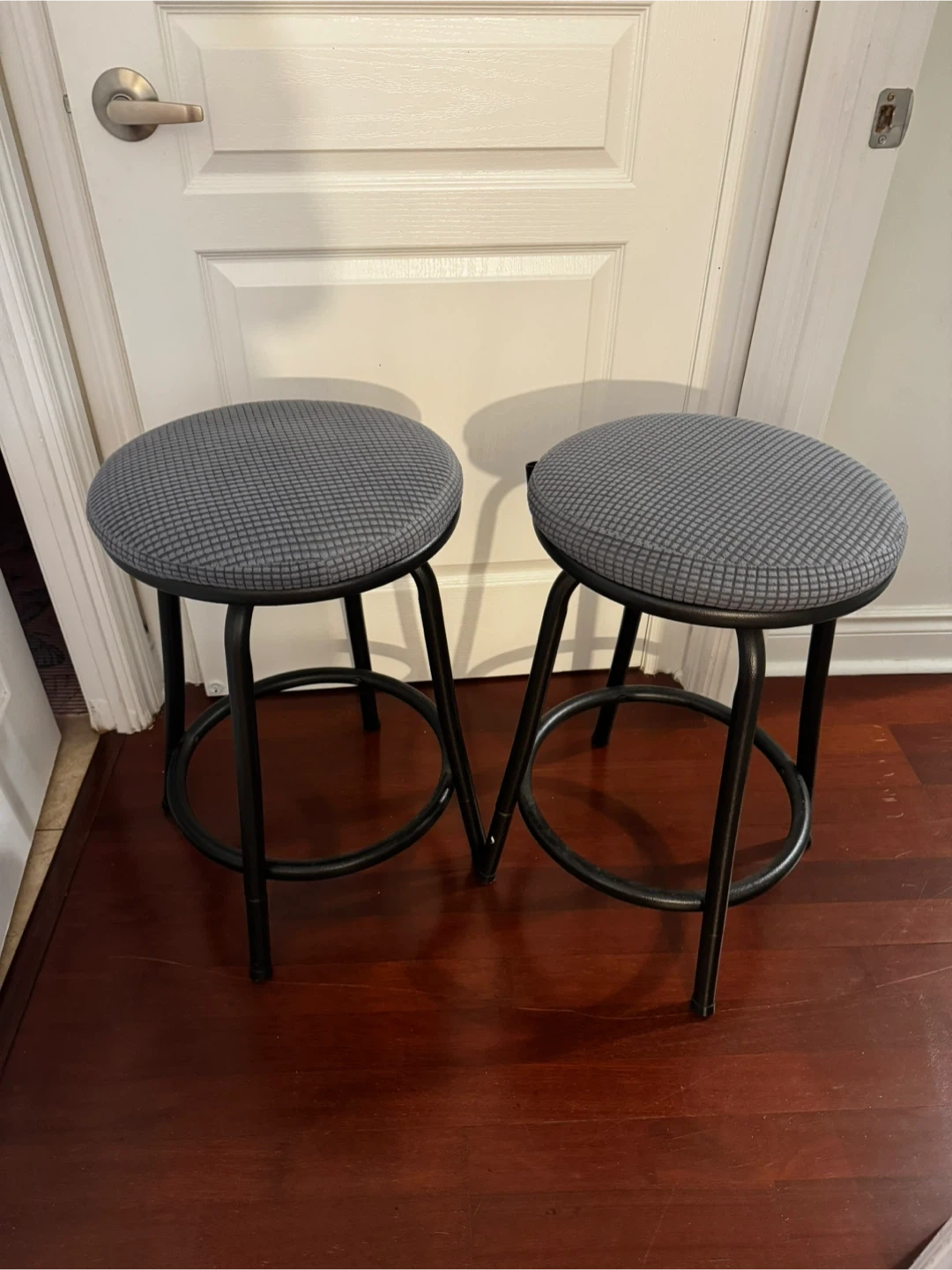 555Selling two bar stools with grey patterned seats and black metal frames. They're in great shape and would look great in any kitchen or bar area The height is 24 inches $20 Yonge and finch area