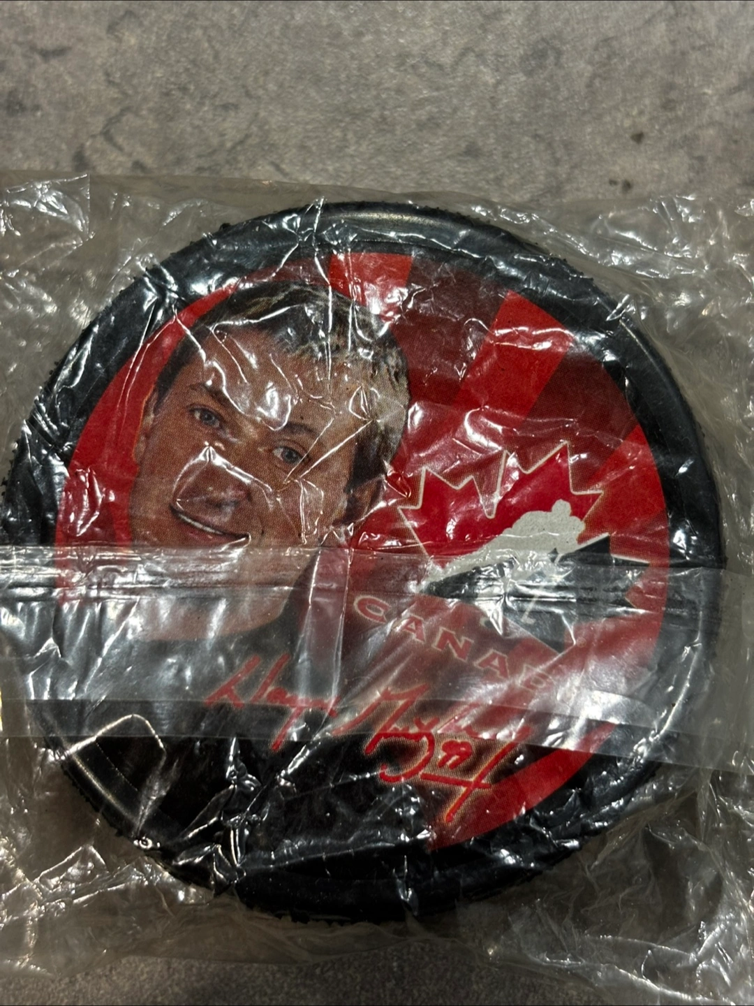 I'm selling a McDonald's Wayne Gretzky hockey puck from 2002. It's still sealed in the original packaging. This puck commemorates Wayne Gretzky's role as Executive Director for the Canadian hockey team in the 2002 Salt Lake City Olympics