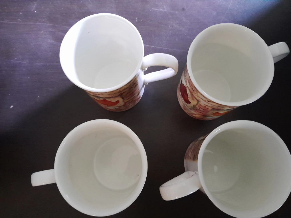 Selling a set of four mugs. Each mug features a lovely maple leaf design, perfect for adding a touch of Canadian charm to your kitchen. They're in great condition and ready for a new home