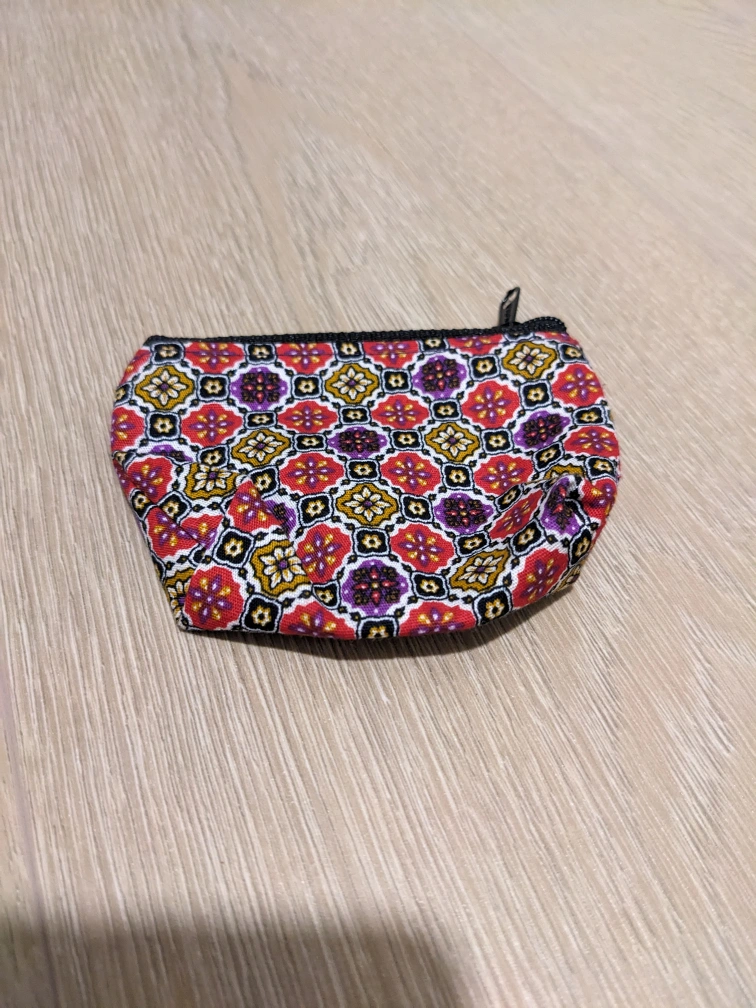 A cute little coin purse with a colourful pattern, perfect for keeping your change organized! Meet at Gilmore station
