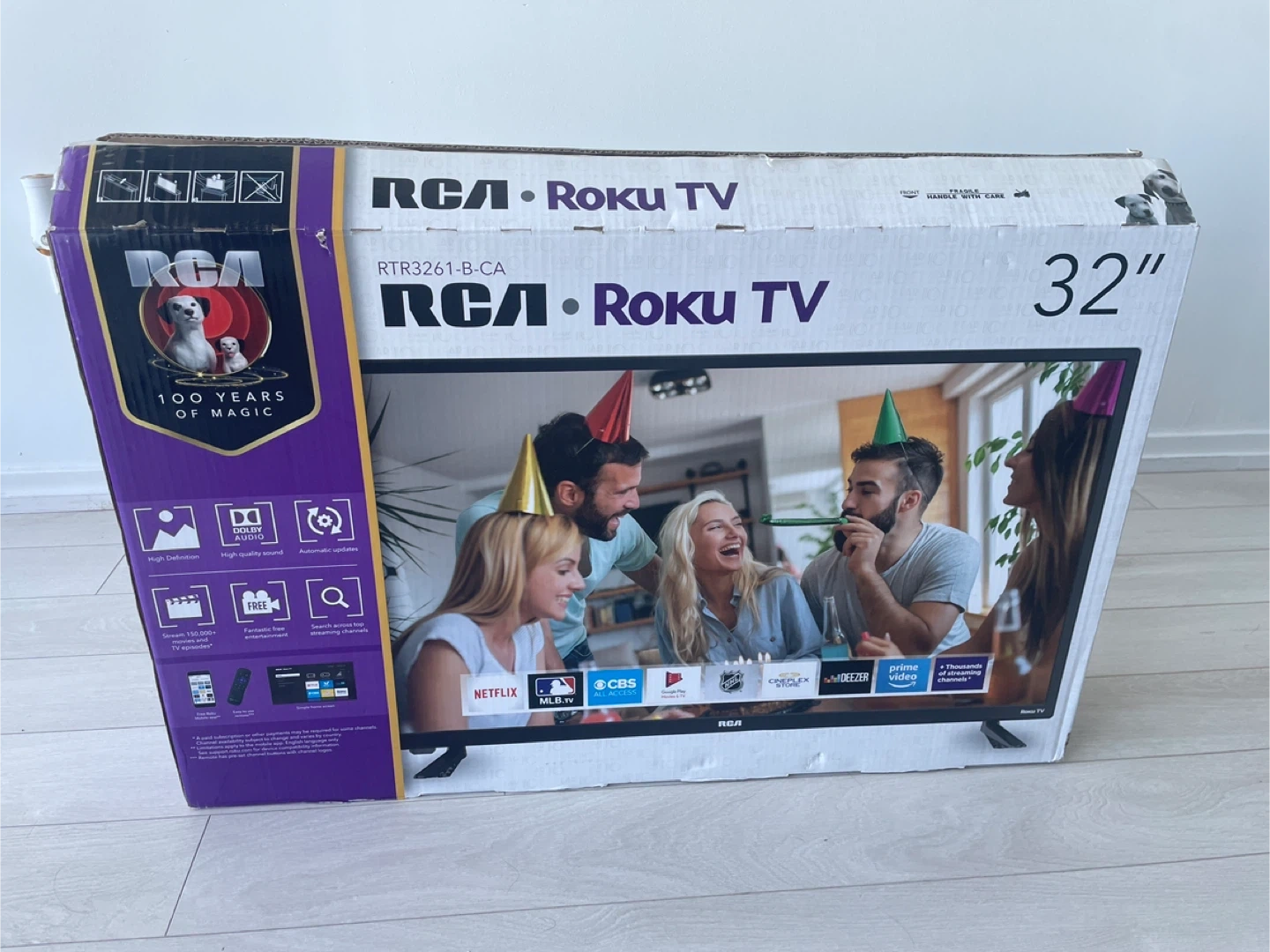 Selling an smart RCA Roku TV, 32 inch. It's in great condition and comes with the original box. Model number is RTR3261-B-CA. Perfect for a bedroom or small living space.