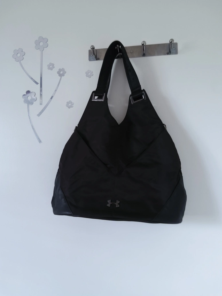 Check out this Under Armour tote bag! It's in great shape and perfect for carrying all your essentials. The bag is black and features the Under Armour logo on the front. It's a stylish and practical choice for everyday use