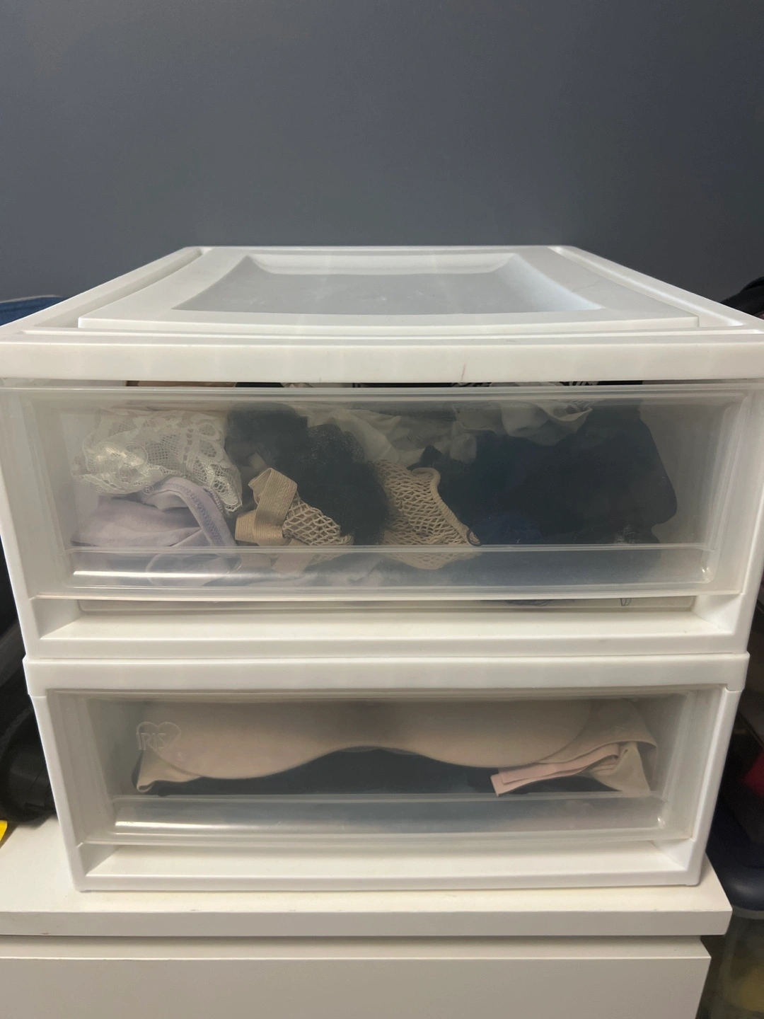 Selling a white, two-drawer storage chest by IRIS USA. It's in great condition and perfect for organizing your closet or any room in your home! ($10 each).